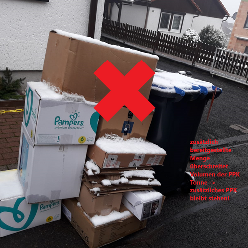 Neben die Papiertonne bereitgestelltes Material wird durch die Mitarbeiter des Entsorgungsunternehmens entsorgt, wenn das bereitgestellte Material das Volumen der Papiertonne nicht überschreitet. Bereitgestelltes Material an Papier / Pappe / Kartonagen ohne bereitgestellte Papiertonne werden nicht mitgenommen. Die mit dem AZV vereinbarten Bündelsammlungen und deren Standplätze bleiben bis auf weiteres unangetastet bestehen. Wegen der aktuellen Marktsituation ist es ab sofort außerdem möglich, überschüssige Mengen an Papier / Pappe / Kartonagen kostenfrei auf den Wertstoffhöfen in Großenlupnitz und Merkers anzuliefern.