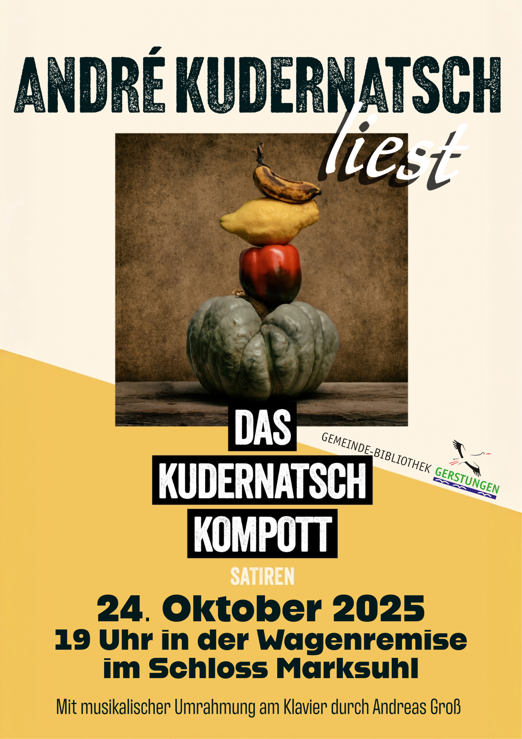 Was wird uns Kult-Komiker Kudernatsch zum Nachtisch aus dem Keller holen? Auf jeden Fall etwas Eingemachtes: Kalauer und Kolumnen, Kabarett, Krimis und Katastrophen. Das wird mal saftig und mal deftig. Zur Auswahl gehören aber auch kühne Kommentare und Geschichten aus dem Gruselkabinett. Zum Glück aber lauter Sachen zum Lachen. Ja, Kudernatsch gibt sein Bestes.