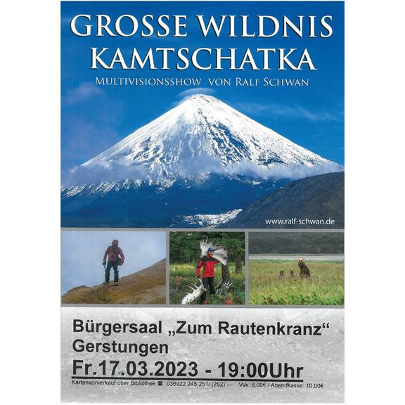 Ralf Schwan berichtet und zeigt in seiner authentischen Live-Multivisionsreportage, ein faszinierend spektakuläres Naturerlebnis und spannende Momente der Abenteuerexpedition „Große Wildnis Kamtschatka“ von und mit Ralf Schwan.