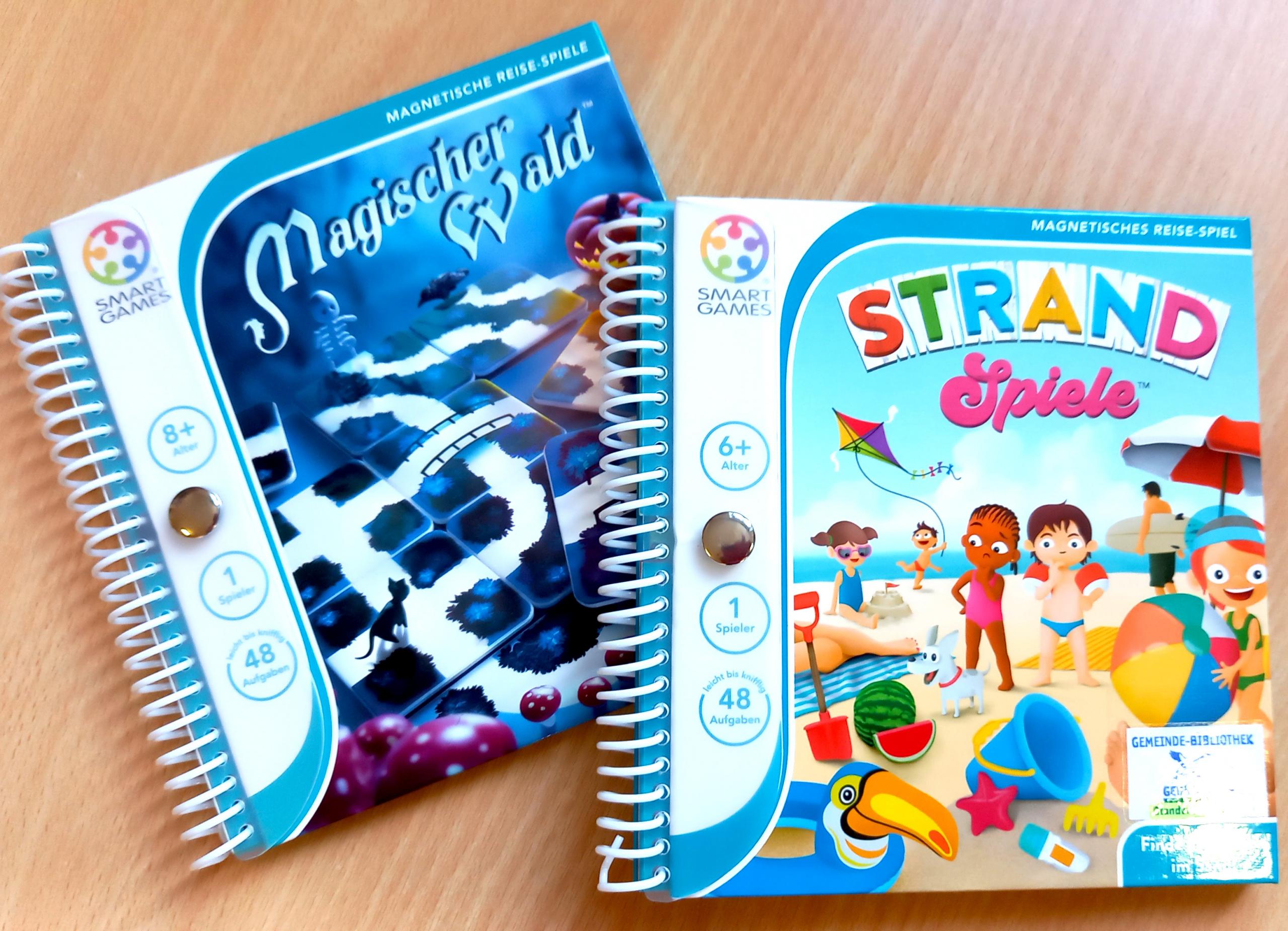 Seit kurzem kann man an unseren beiden Bibliotheksstandorten in Gerstungen und Marksuhl auch magnetische Reisespiele ausleihen. Diese kleinen Knobelspiele im Ringbuchformat bieten Spielspaß für zu Hause oder unterwegs. Dank des magnetischen Spielfelds und der magnetischen Puzzleteile sind sie ideal für die Reise. Im Angebot sind mehrere Titel für Kinder ab 4 bis ab 8 Jahren.