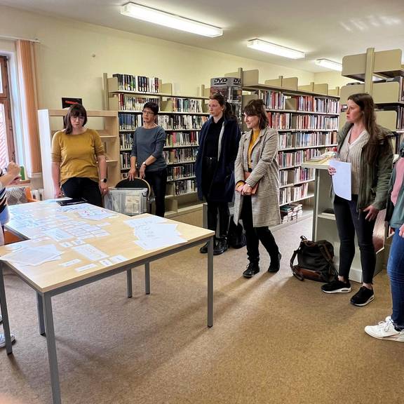 Nach dem erfolgreichen Tag der offenen Tür am Philipp-Melanchthon-Gymnasium wurden bereits die nächsten Bildungsprojekte besprochen. Hierzu begrüßten der Hauptamtsleiter und die Kolleginnen aus Museum und Bibliothek die Lehrkräfte des Gymnasiums im Schloss Gerstungen. Hier stellte der Hauptamtsleiter den Gästen die vielfältigen Angebotsmöglichkeiten der Gemeinde vor. Neben den hauptamtlichen gemeindeeigenen Einrichtungen ging es u. a. um die Beteiligungsprozesse und die Arbeit des Jugendzentrums, welches als zuverlässiger Partner größere Bildungsprojekte aktiv unterstützt. Im Anschluss stellte die Museumsleiterin die themenbezogenen Bildungsprogramme anhand eines Beispiels zum Römischen Reich vor. Ergänzt wurde die Gesprächsrunde durch die Kolleginnen der Bibliothek, die u. a. in Bezug auf Quellenrecherche und schulische Leihangebote ausführten. Näher ging man außerdem auf die Ausgestaltung des Lesewettbewerbs ein. Am Ende wurden bereits Ideen entwickelt sowie ein Termin zur Exkursion vereinbart.