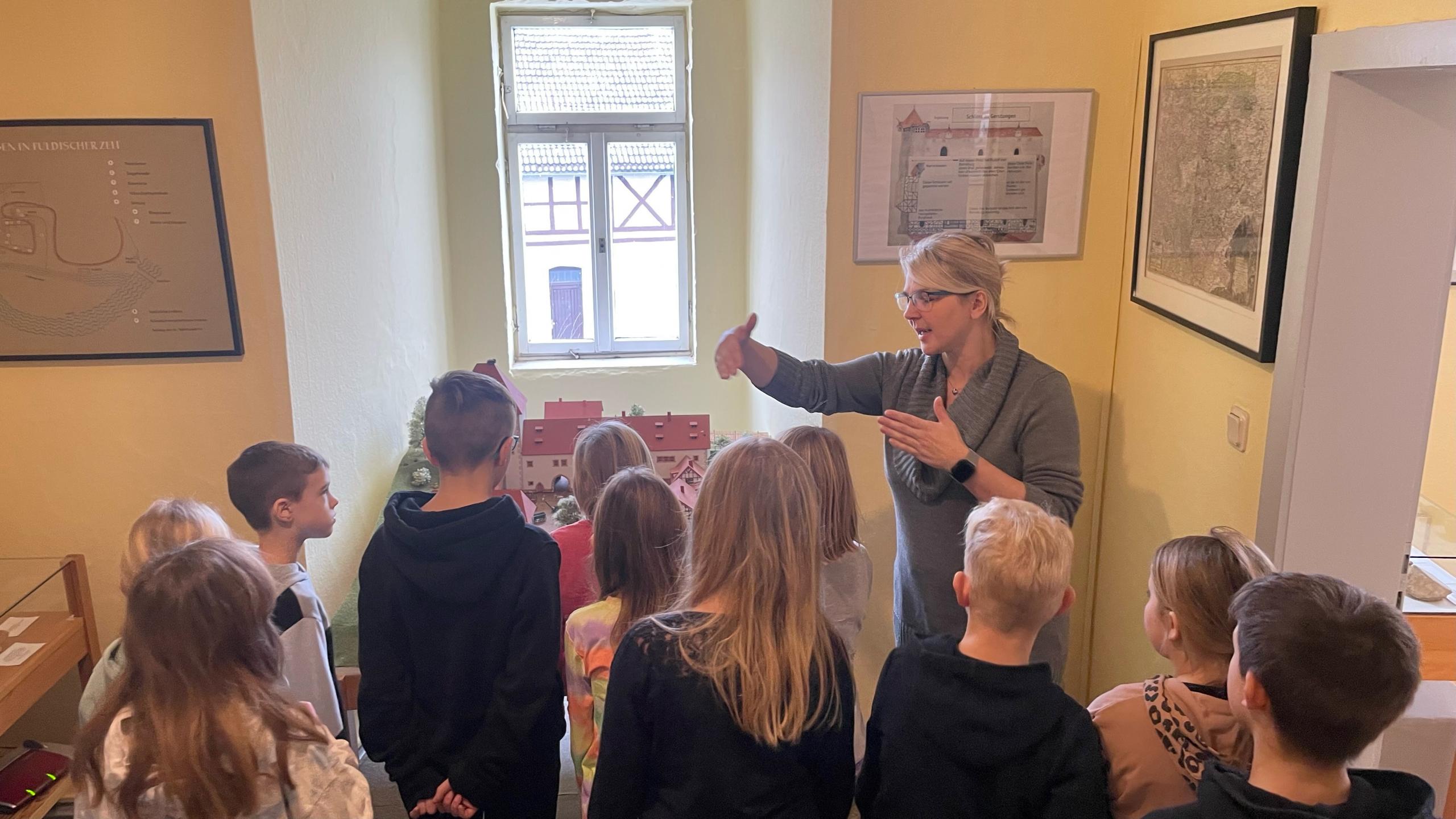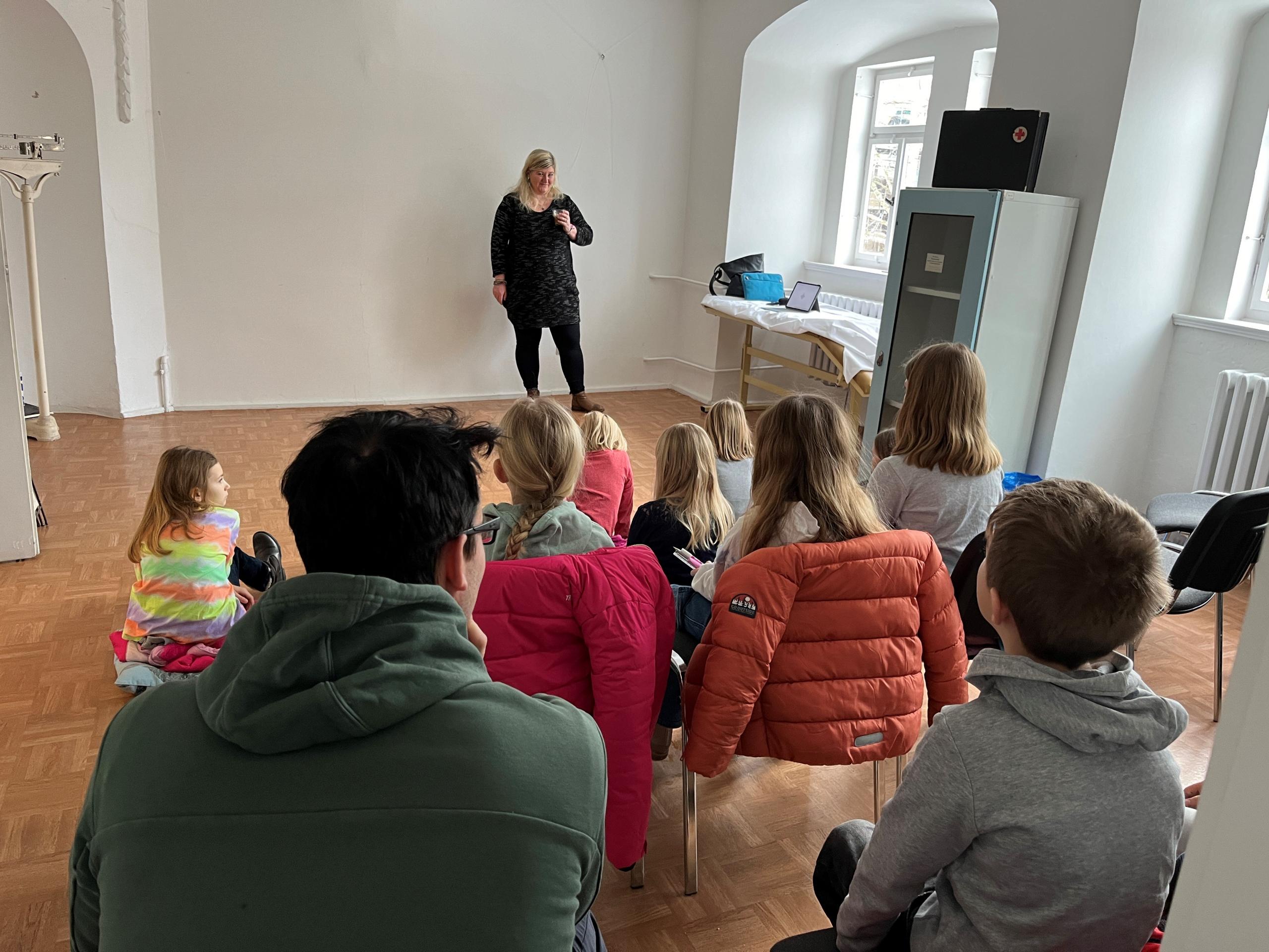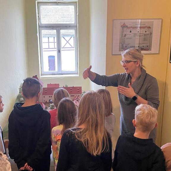 Am 16. Januar startete das Projekt im Museum und 15 Kinder der dritten Klassen kamen zu Besuch, um sich alles in Ruhe anzusehen. Bereits zum zweiten Termin am 31. Januar wurden Gruppen eingeteilt, die die ausgewählten Stationen mit Geschichten untermalen. Franziska Klemm vom Wartburgradio erklärte den Kindern ganz genau wie so ein Audioguide funktioniert und worauf sie achten müssen.