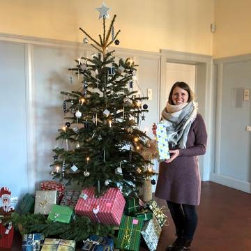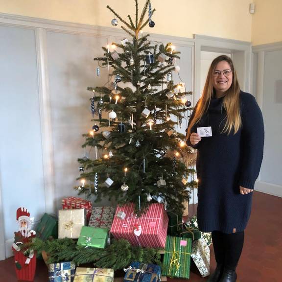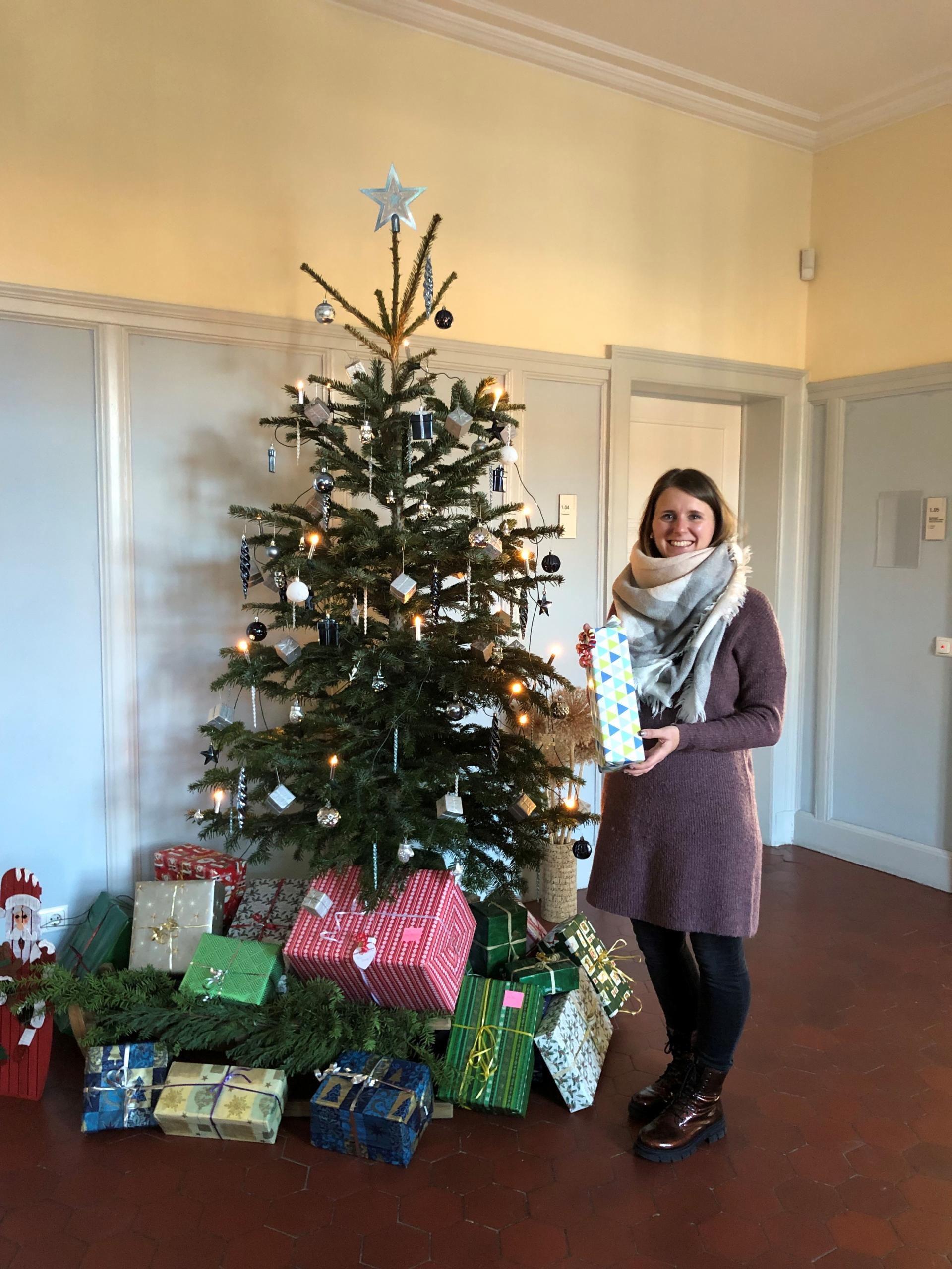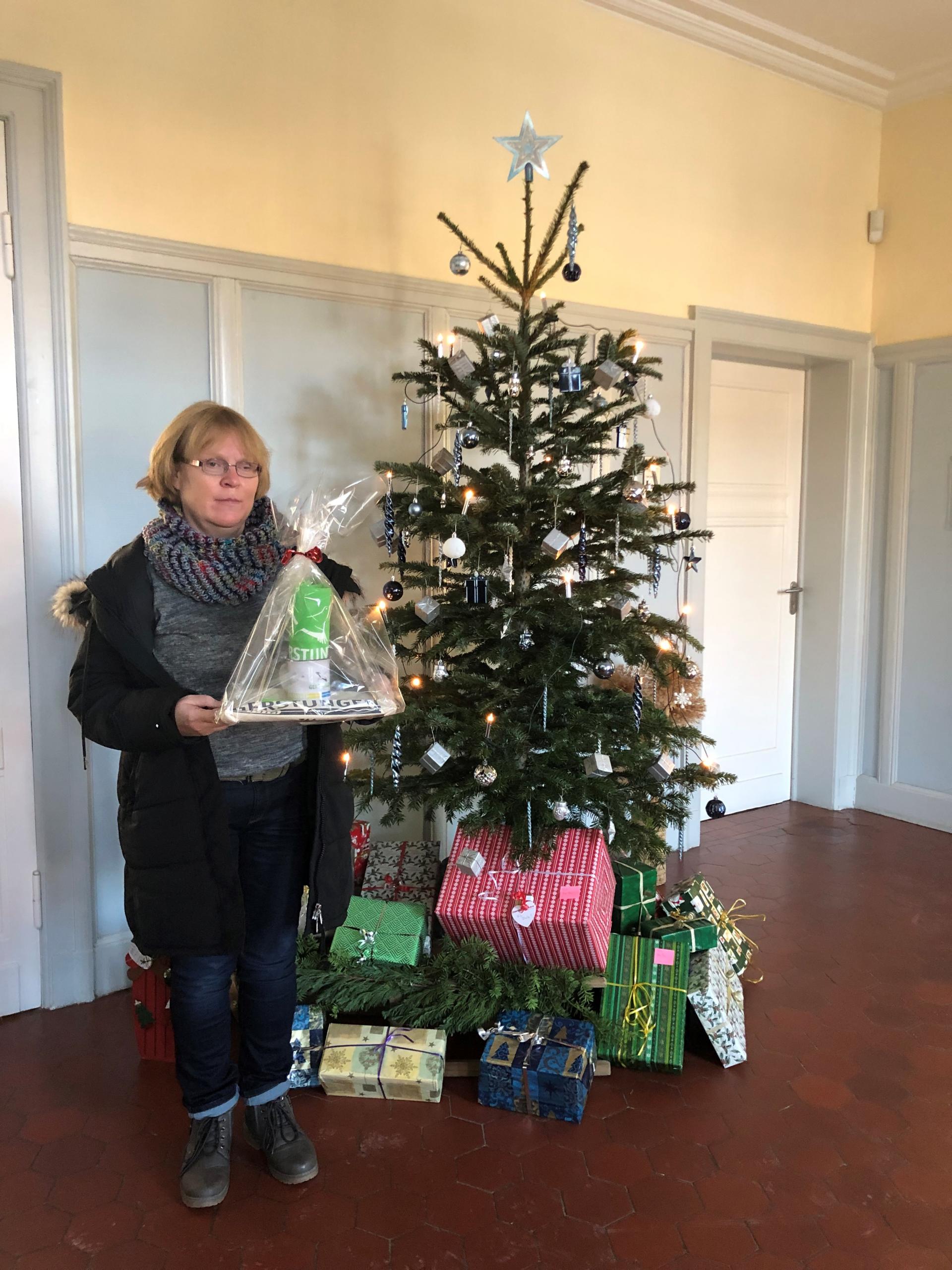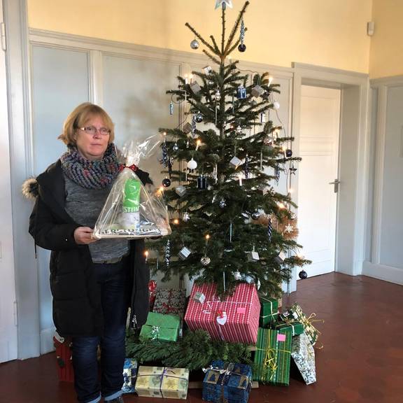 Im feierlichen Rahmen des liebevoll geschmückten Weihnachtsbaums im Rathaus der Gemeinde fand die Übergabe der Geschenke statt.