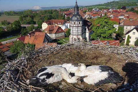 Am Montag, dem 1. Juni 2021 - Kindertag - wird der Storchenbeauftragte der Wartburgregion, Klaus Schmidt, die jährliche Beringung der Jungstörche in der Gemeinde durchführen.