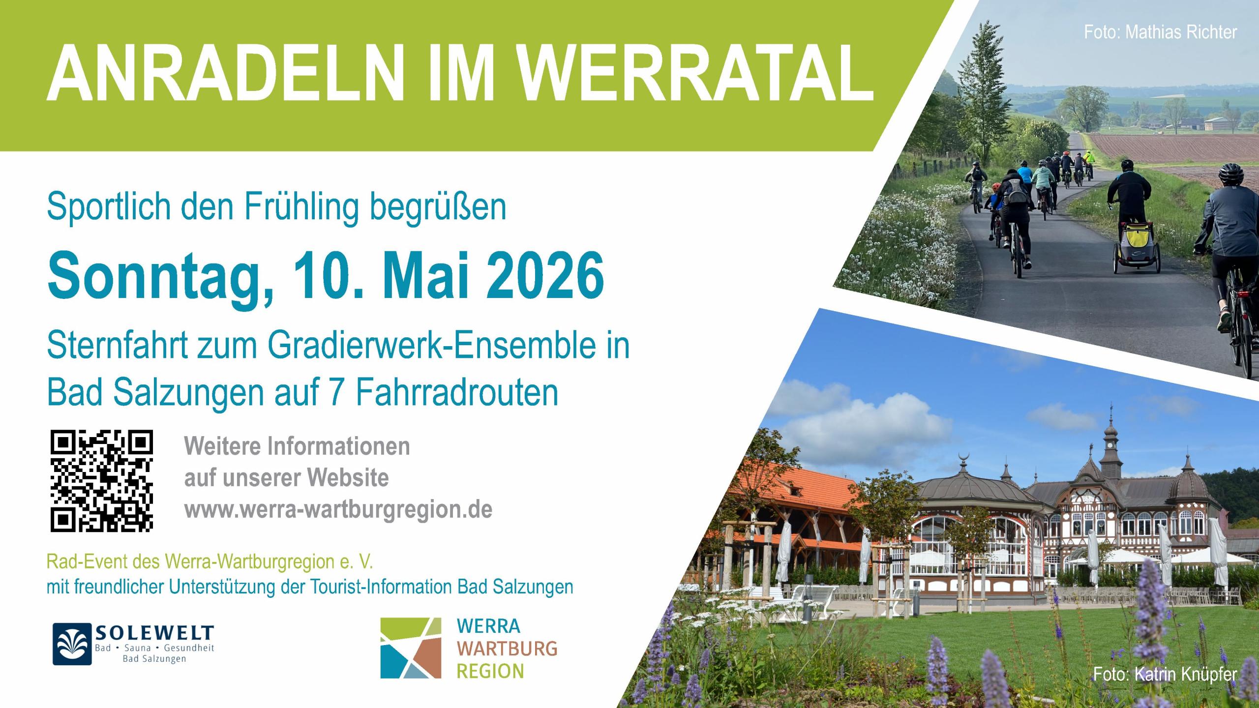 Mit dem „Anradeln im Werratal“ wird der Frühling auf besonders aktive Weise willkommen geheißen. Der Werra-Wartburgregion e. V. lädt alle Fahrradbegeisterten herzlich zur gemeinsamen Sternfahrt am Sonntag, den 10. Mai 2026, ein. Die Teilnahme an den geführten Radtouren ist kostenfrei.