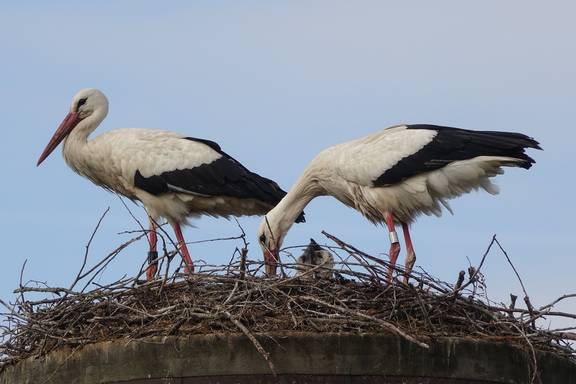 Beringung der Jungstörche in der Gemeinde