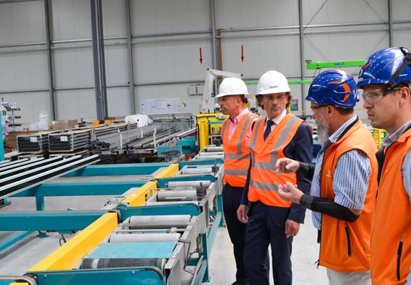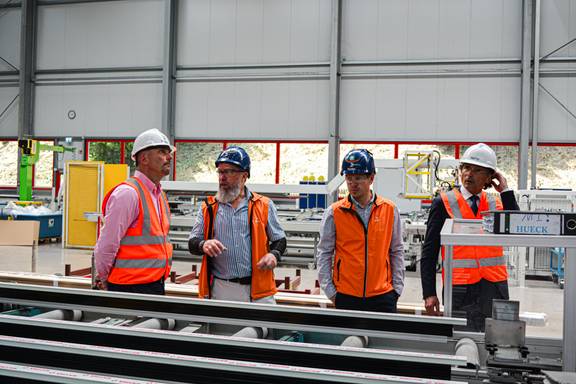 Im Anschluss an den Spatenstich zum 2. Bauabschnitt im Gewerbegebiet „Oberhalb der Bahn“ vergangenen Donnerstag besuchte Staatssekretär Mario Suckert gemeinsam mit Bürgermeister Daniel Steffan den Gerstunger Standort der Firma WICONA.