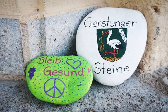 "Bleibt gesund mit GERSTUNGER STEINEN" - heute Morgen auf der Rathaustreppe: