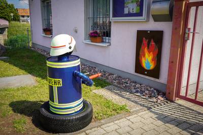 Bei einem Kindertagsfest der Freiwilligen Feuerwehr Gerstungen am vergangenen Dienstag wurde nicht nur gefeiert, sondern auch eine tolle Initiative vorgestellt! Vor dem Feuerwehrgebäude steht ein schlichter und etwas unansehnlicher Versorgungskasten – doch die Feuerwehr hatte eine kreative Lösung: Eine alte Tonne wurde über den Versorgungskasten gestülpt und in ein Feuerwehrmännchen verwandelt, das nun einen Brand am Gebäude „löscht“. Die selbst gemalte Flamme erinnert an die wichtige Aufgabe "Brandschutz" und soll zugleich die Jugend für dieses unverzichtbare Ehrenamt begeistern.