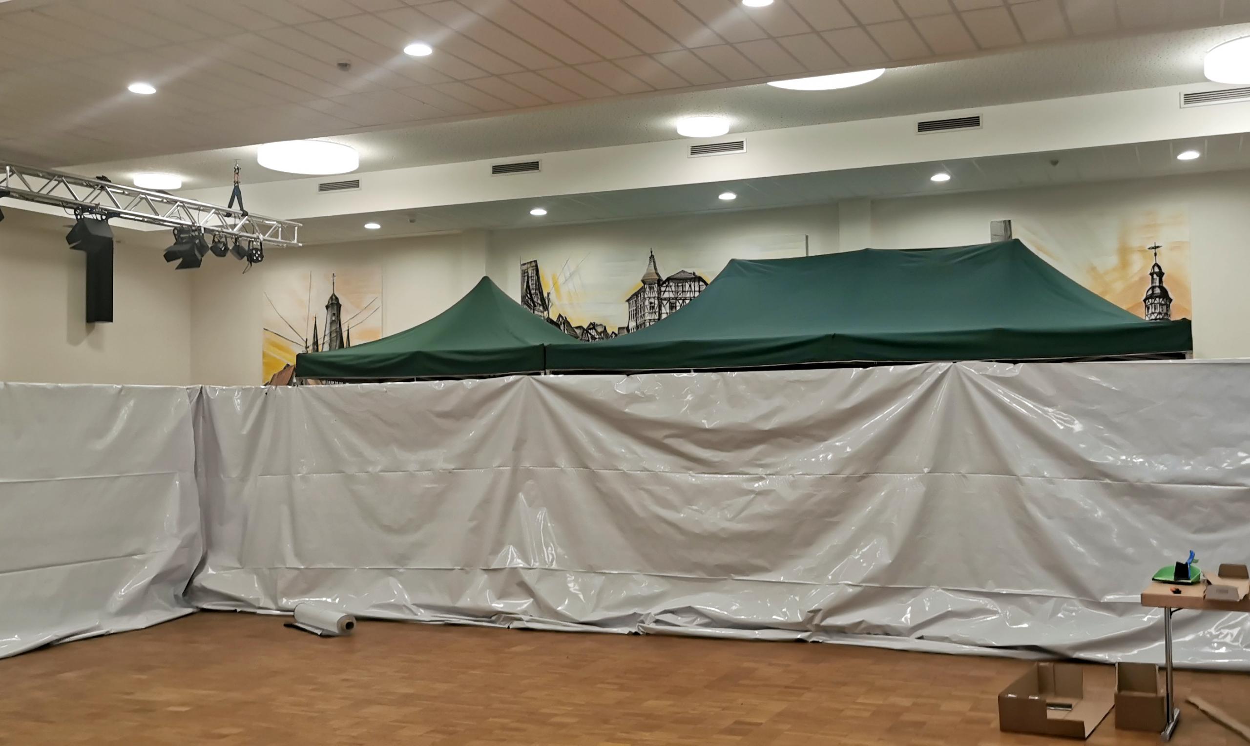 Fleißige Hände werkeln im Bürgersaal "Zum Rautenkranz" , um ein "vorübergehendes" IMPFZENTRUM in #Gerstungen auf die Beine zu stellen.