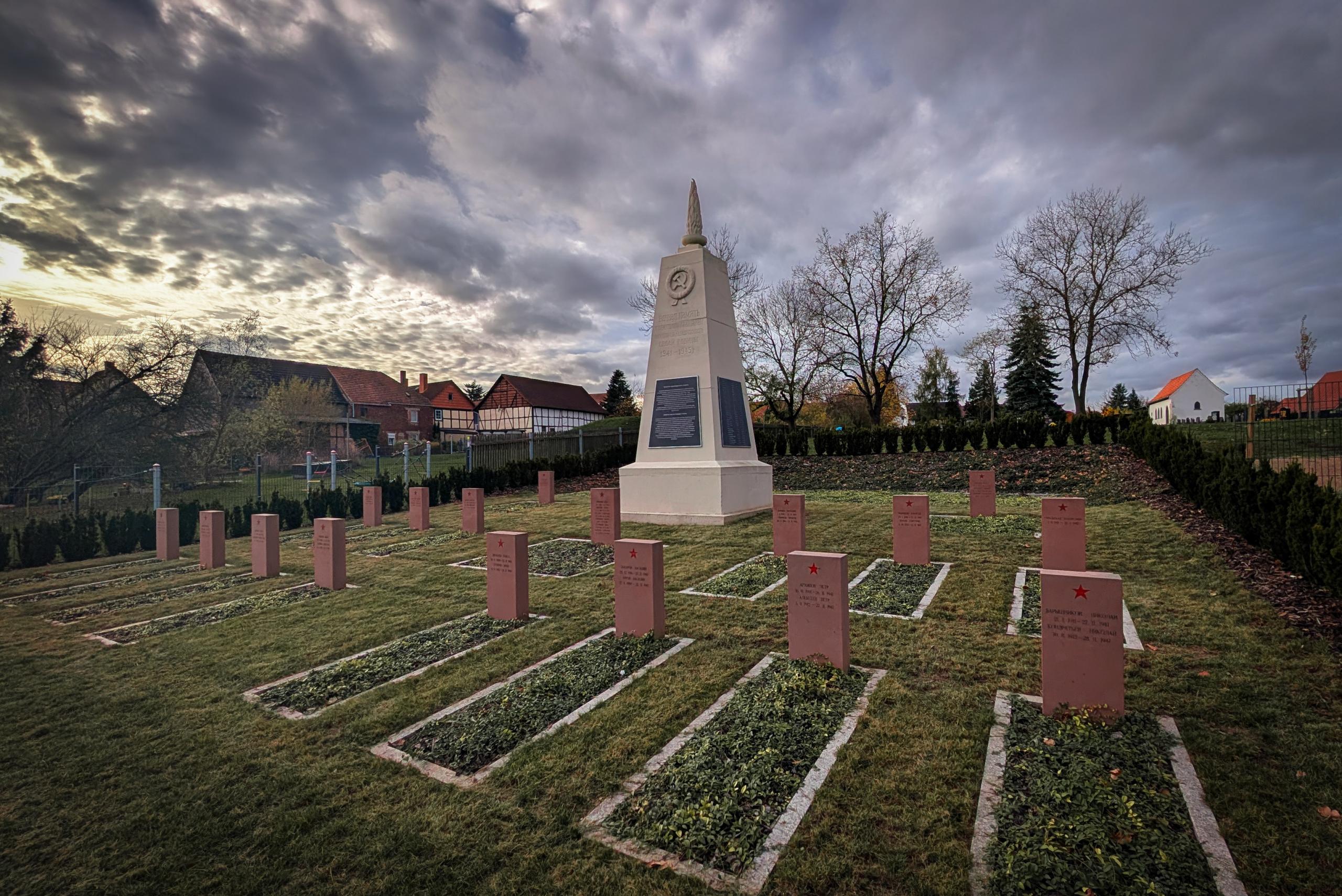 In den Jahren 2023 und 2024 wurden dort 70 Opfer von Krieg und Gewalt, darunter 60 sowjetische Kriegsgefangene aus dem Lager „STALAG IXc“, würdevoll umgebettet. Nach der Restaurierung des Obelisken und der Neugestaltung der Grabflächen wollen wir gemeinsam mit kirchlichen und politischen Vertretern innehalten, erinnern und ein Zeichen für den Frieden setzen.