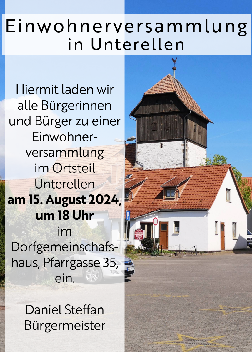 Hiermit laden wir alle Bürgerinnen und Bürger zu einer Einwohnerversammlung im Ortsteil Unterellen ein: