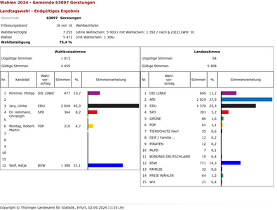 Endgültige Wahlergebnisse der Landtagswahlen in der Gemeinde Gerstungen