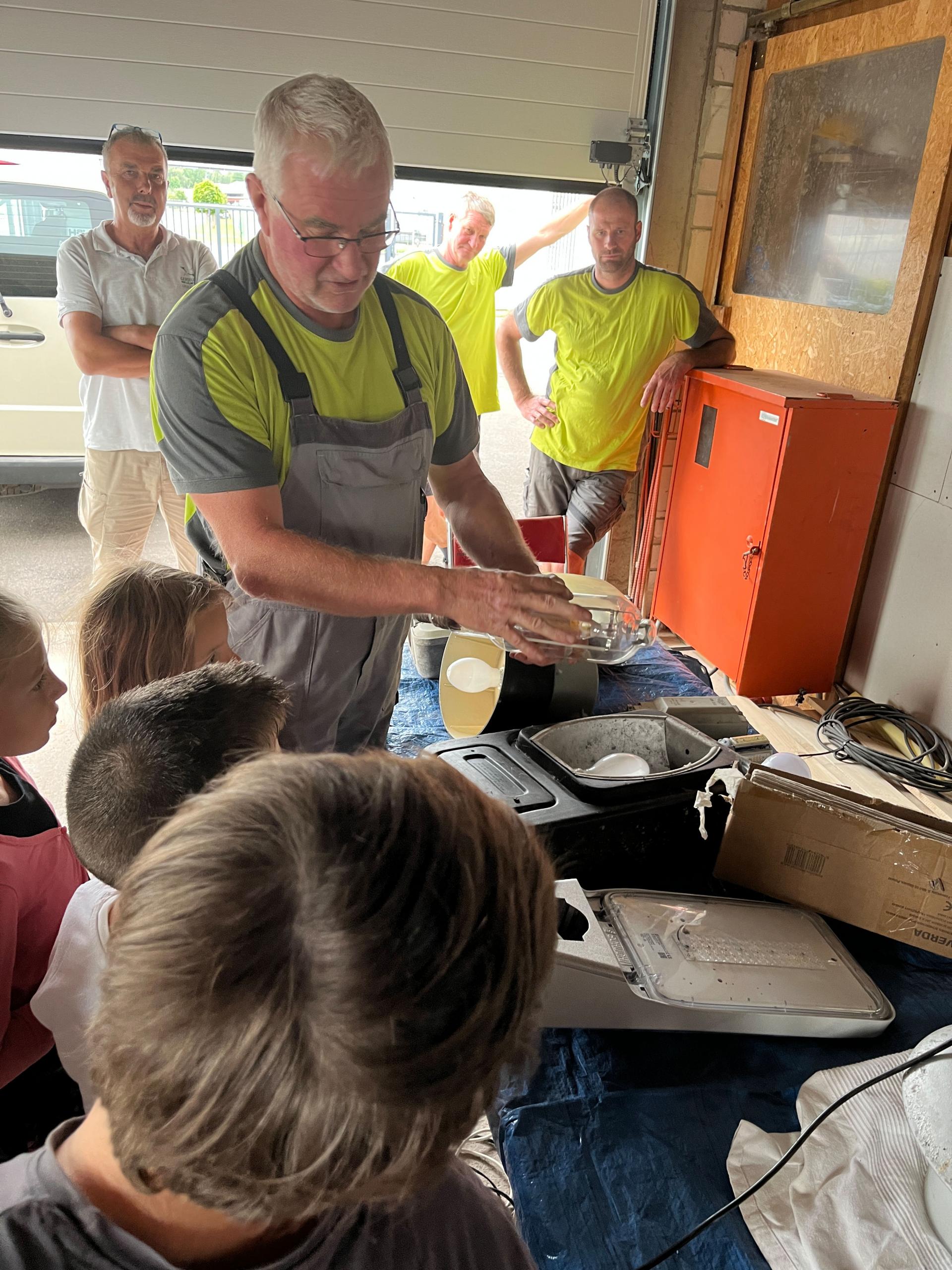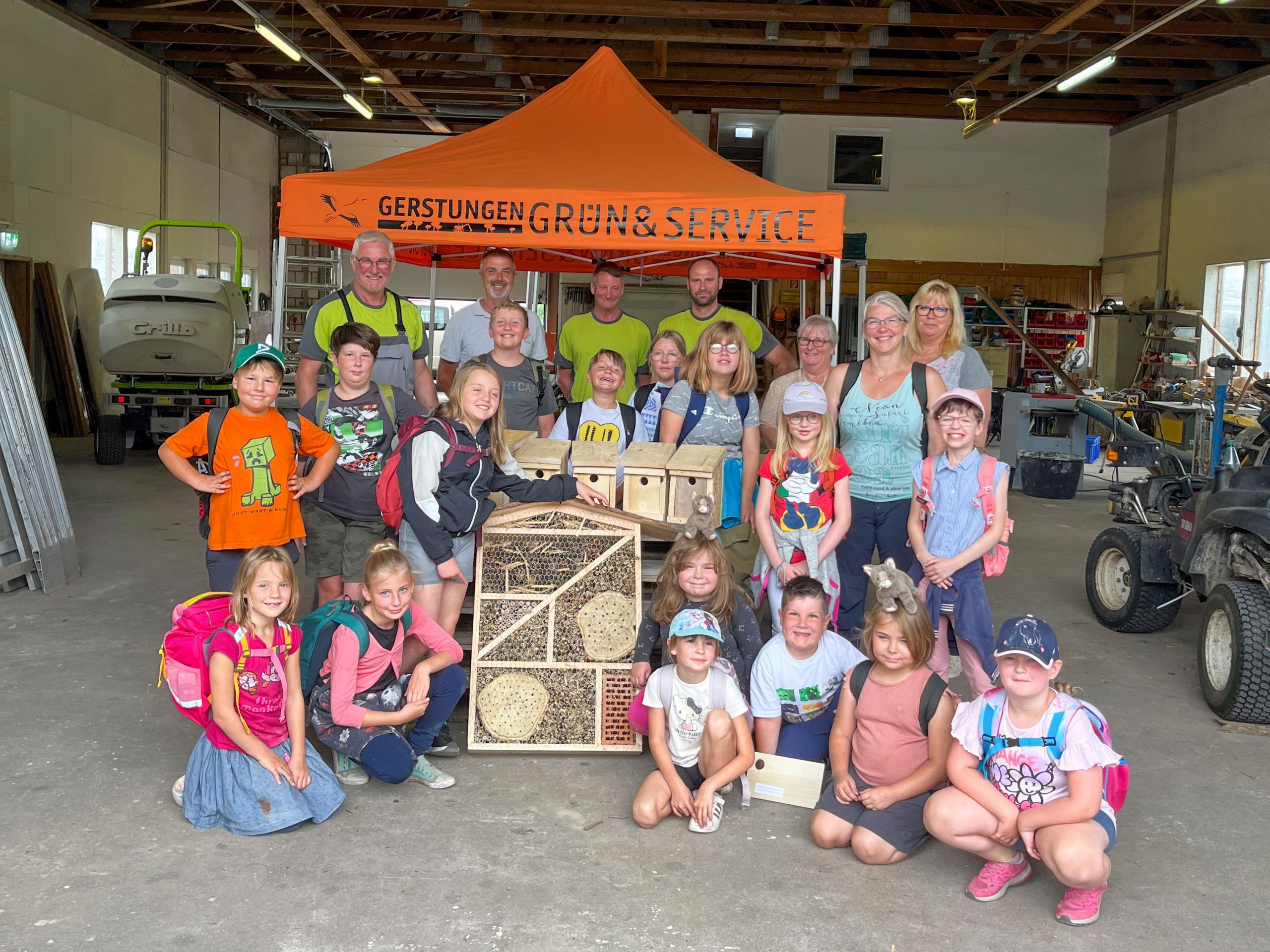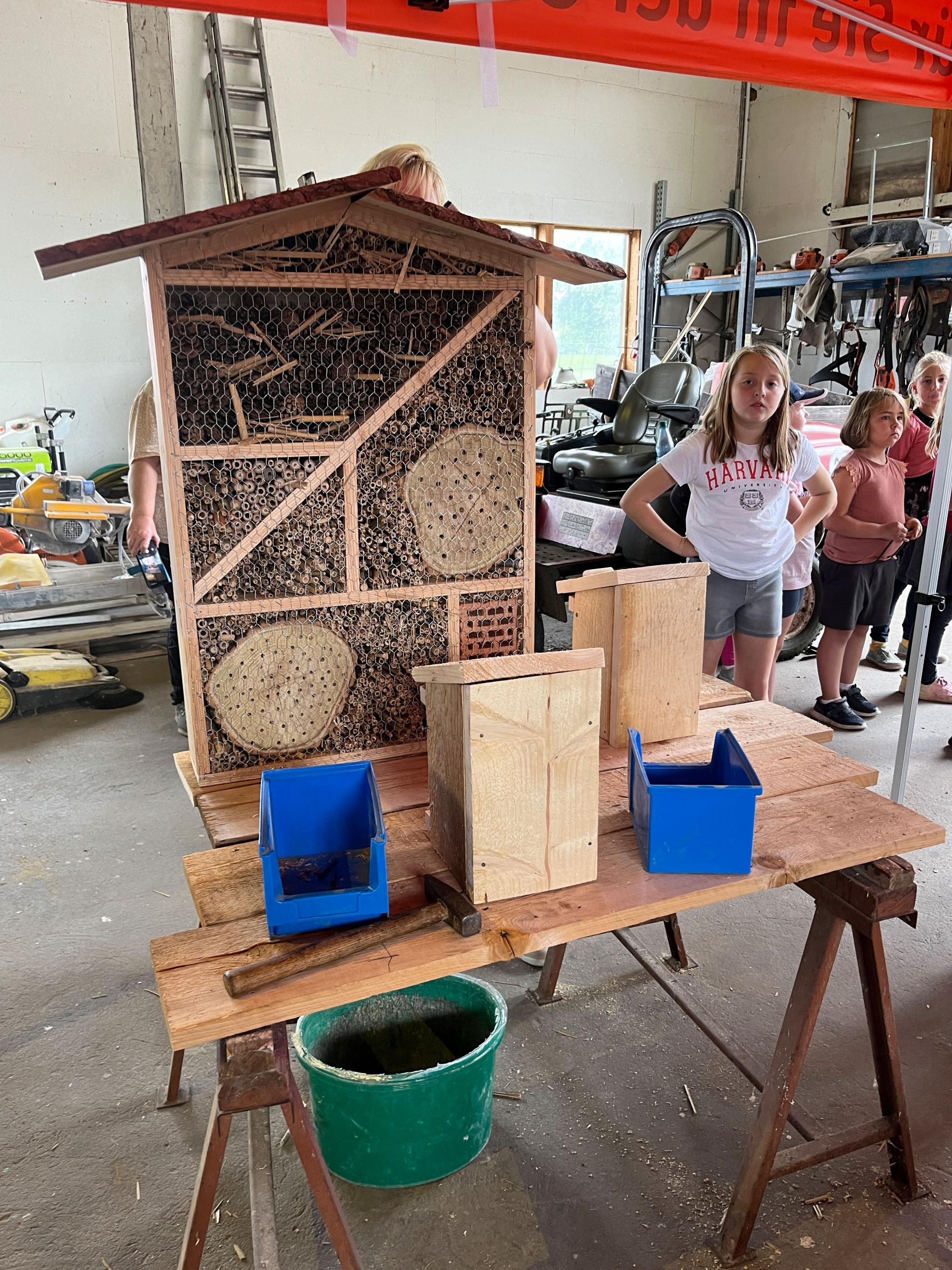 Ein Highlight war u. a. der Besuch des Bauhofs, wo die Kinder staunend erfuhren, wie viel Arbeit hinter einem funktionierenden Gemeindebauhofs steckt. Mitarbeiter Ralf Häring erklärte anschaulich die Technik hinter der Straßenbeleuchtung und stellte verschiedene Lampentypen vor. Bauhofleiter Michael Stück und die Mitarbeiter Helmut Klatt sowie Christian Ißleib wurden kreativ und bastelten gemeinsam mit den Kindern ein Insektenhotel sowie Vogelhäuschen – praktischer Naturschutz!