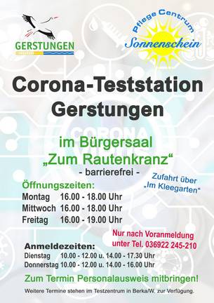 Geänderte Öffnungszeiten der Corona Teststation Gerstungen