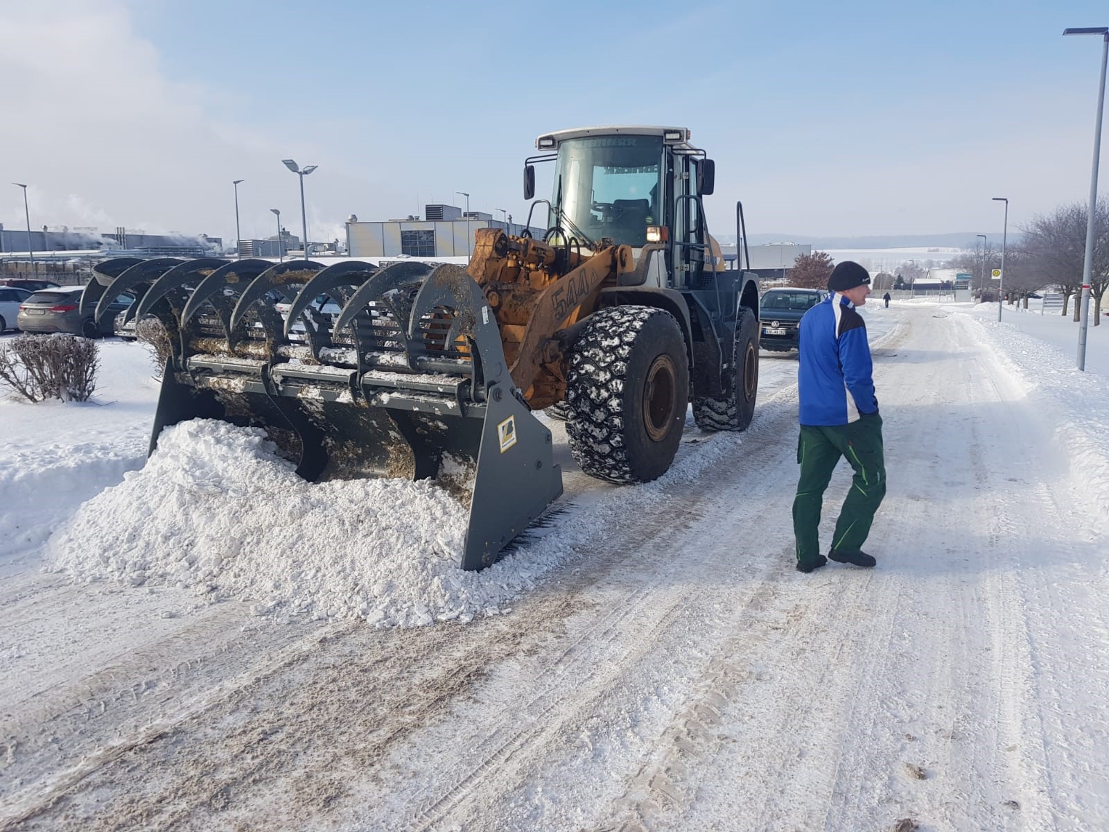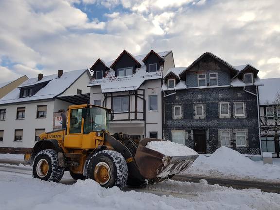 Heue wird der Schnee in der Ortslage Gerstungen, vor allem in der Wilhelmstraße bis zum Markt, im Gewerbegebiet Lehmkutte, Am Erlenbach und im Kleegarten entfernt. Dabei wird die Gemeinde von der Agrargenossenschaft Gerstungen tatkräftig unterstützt.