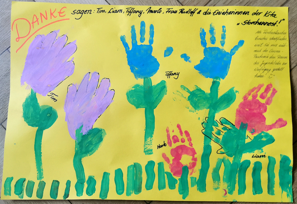 Damit sagen alle Kinder Dankeschön, die in der Coronazeit Räumlichkeiten im Jugendhaus Gerstungen nutzen durften für die Frühförderung.