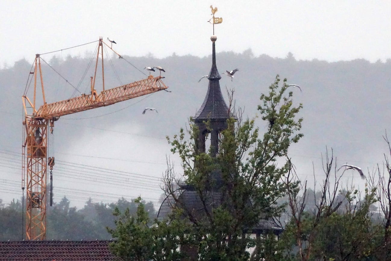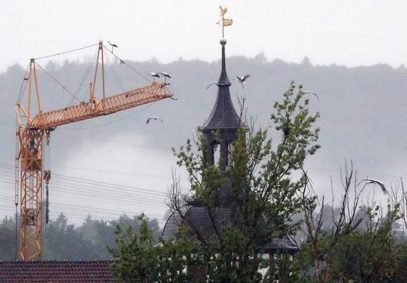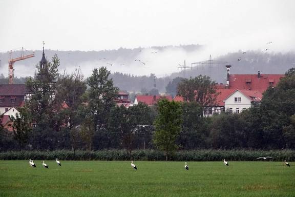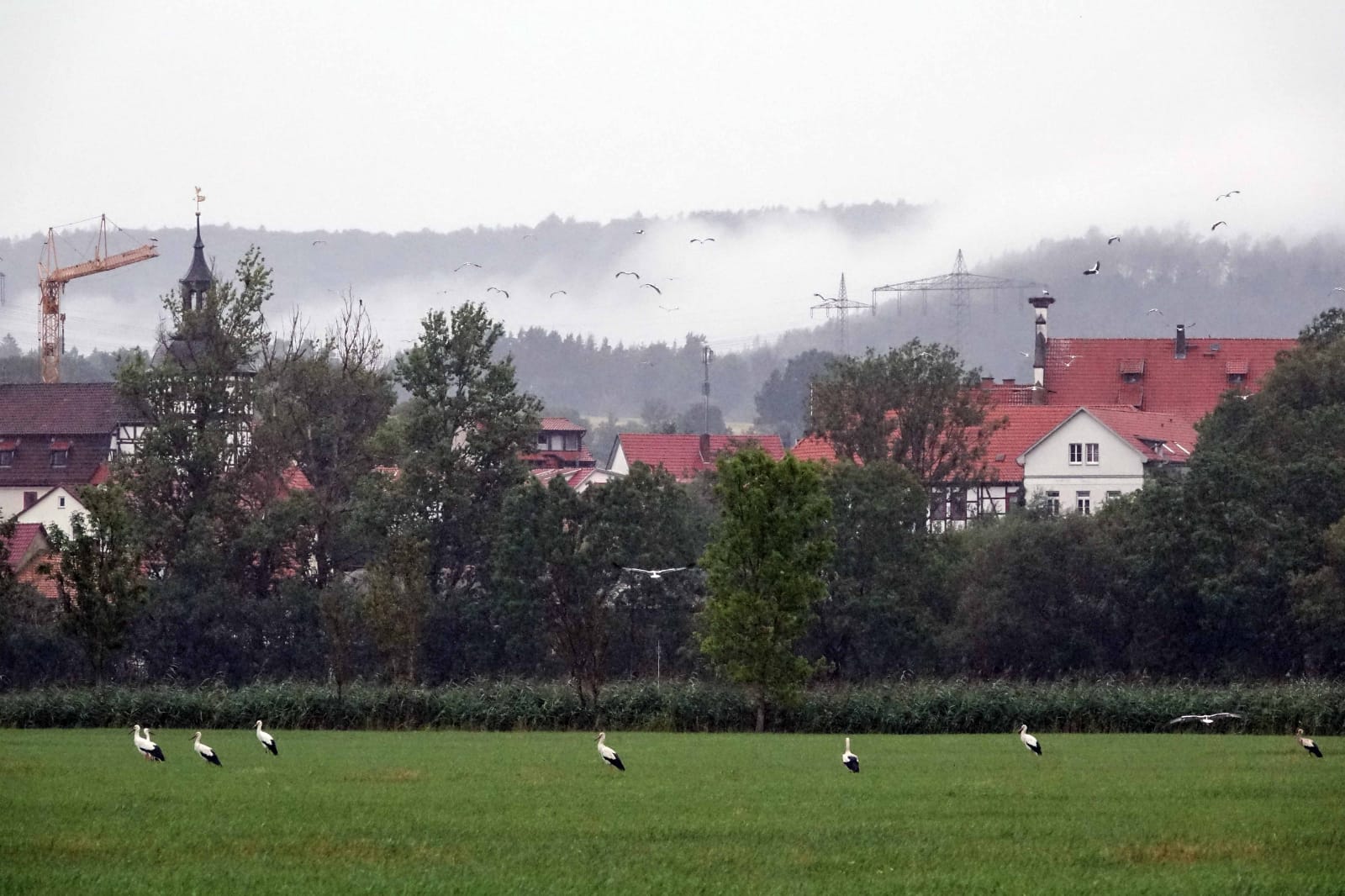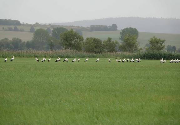 Etwa 70 Störche versammelten sich gestern in der Werra-Aue bei Gerstungen, um noch einmal Kraft zu tanken für ihren Abflug in südliche Winterquartiere.