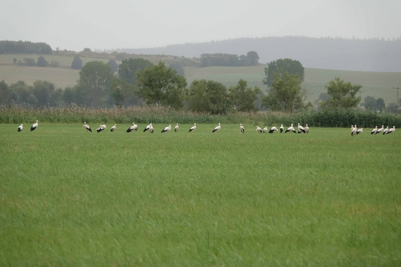 Große Storchenansammlung in der Gerstunger Werra-Aue