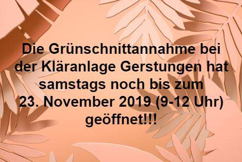 Grünschnittannahme an der Kläranlage bis einschl. 23. November geöffnet...