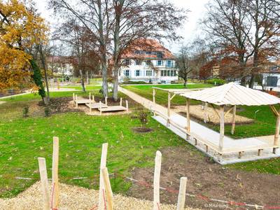 Hauptziel des Vorhabens war die Neugestaltung der hinteren bisher wenig genutzten Parkfläche mit vielfältigen Spielgeräten und Betätigungsmöglichkeiten für Jung und Alt. Verschiedene Sportgeräte wie ein Motorik-Parcours, eine Calistenics-Anlage (Anlage für Eigengewichtsübungen), eine Bein- und Brustpresse sowie ein Mühle-Spielgerät bieten neben großzügigen Parkbankanlagen, einem Sonnendeck sowie einer Holzpergola inmitten des schönen Rathausparkes mit historischem Baumbestand den künftigen Besuchern Abwechslung bzw. laden zum Verweilen ein.