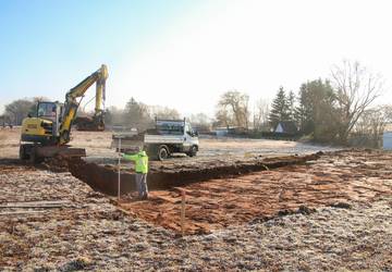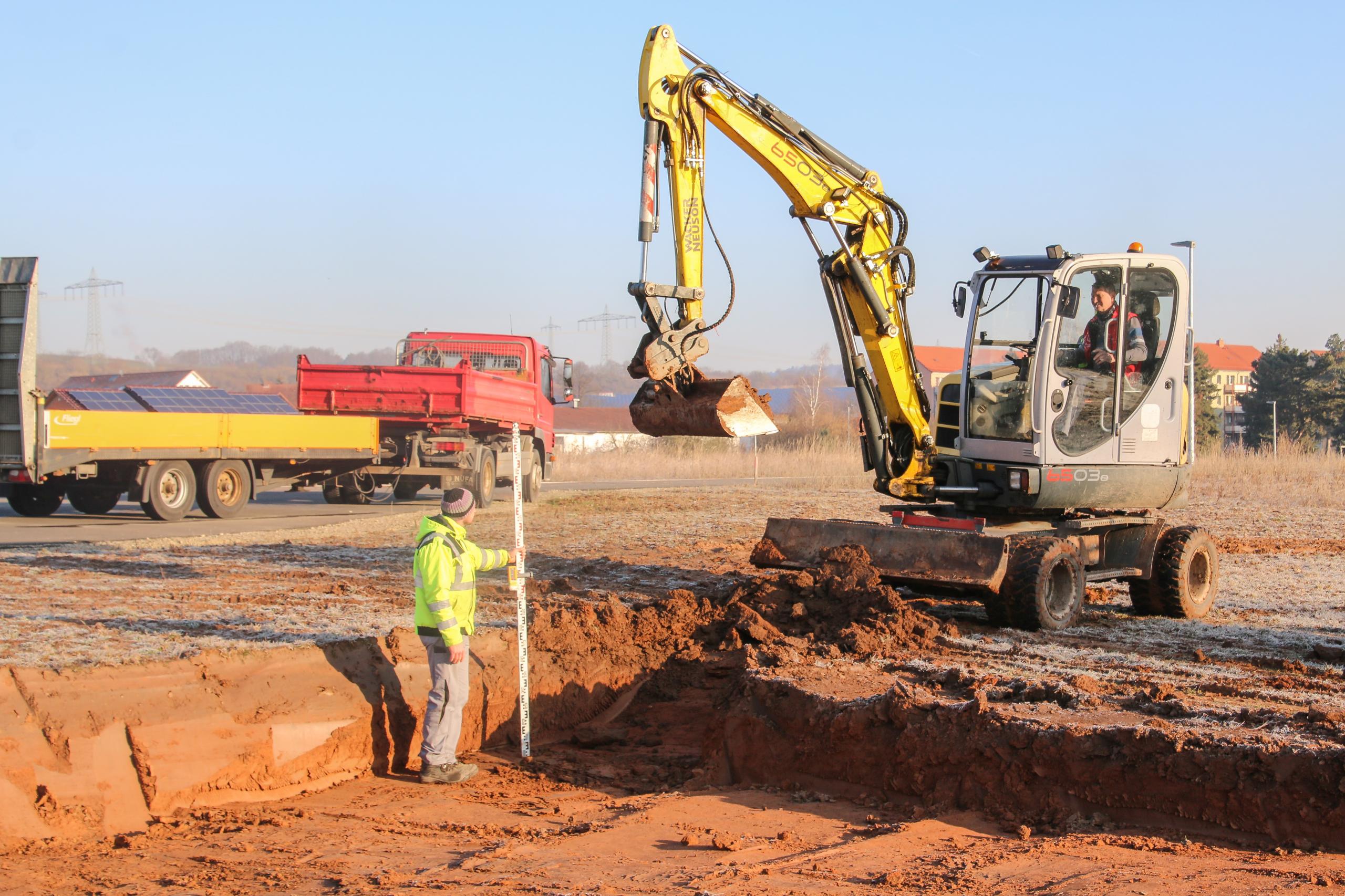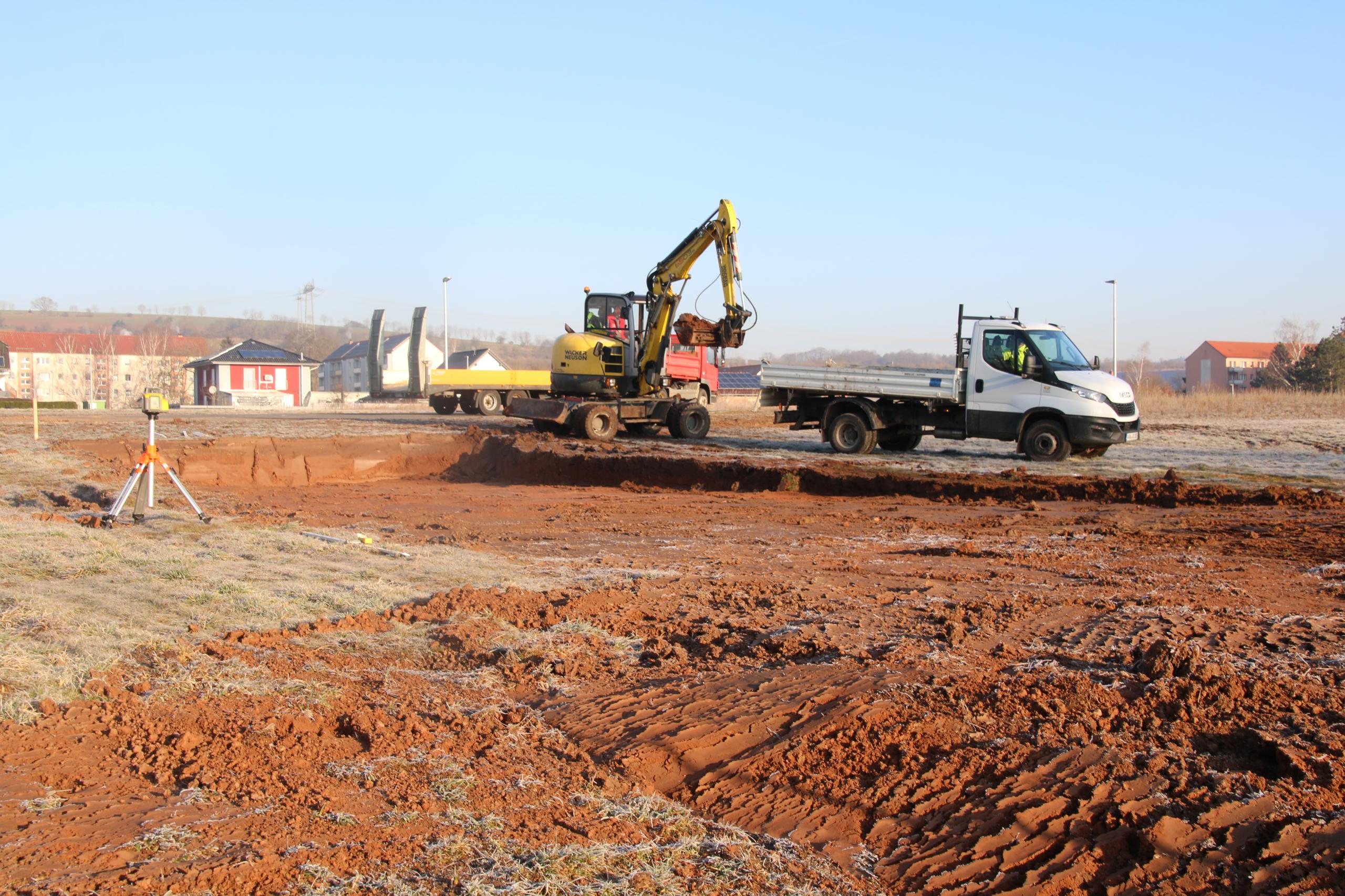 Auf einer zweiten, nachgelagerten Teilfläche nahe des Werratalradweges ist ein Bolzplatz vorgesehen. Diese Maßnahme wird in Eigenregie durch den gemeindlichen Bauhof umgesetzt. Gegenwärtig modellieren und terrassieren die Kollegen des Bauhofes das Gelände. Mit schwerem Gerät wird der Untergrund vorbereitet, sodass der Platz nach und nach weiter ausgebaut werden kann.