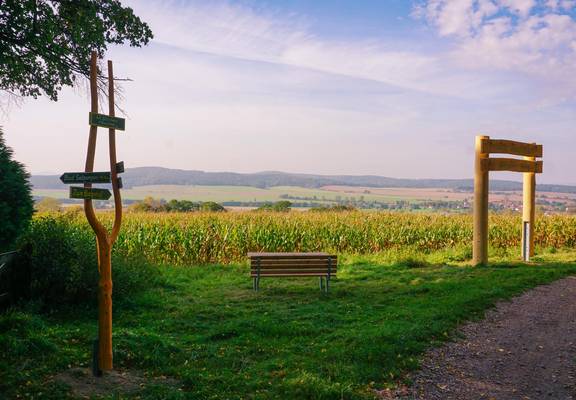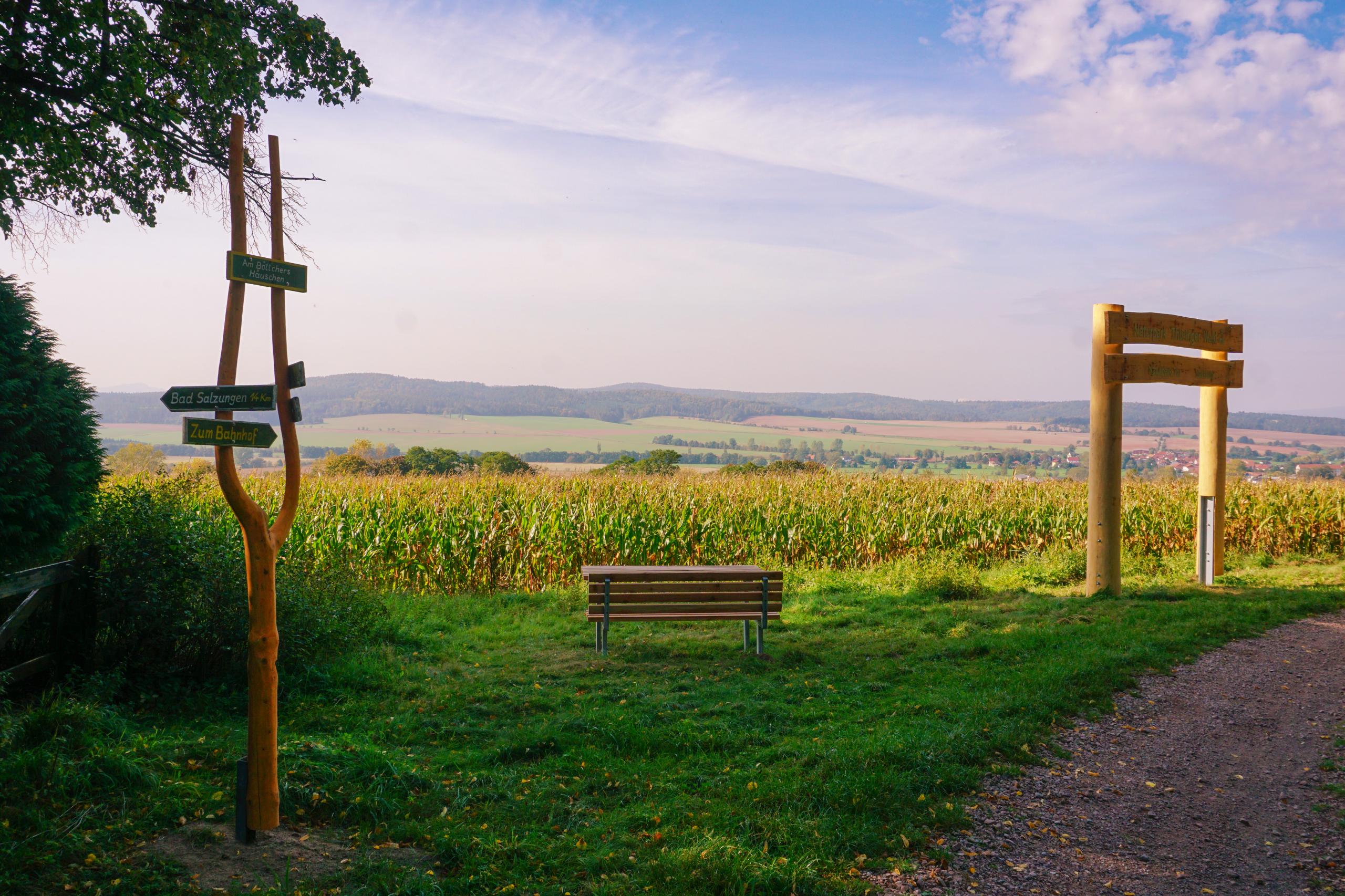 Eins von mehreren NATURPARK-Toren „Thüringer Wald“ im Gemeindegebiet GERSTUNGEN ist u. a. hier auf einer Anhöhe bei Marksuhl von der Naturpark-Meisterei aufgestellt worden.