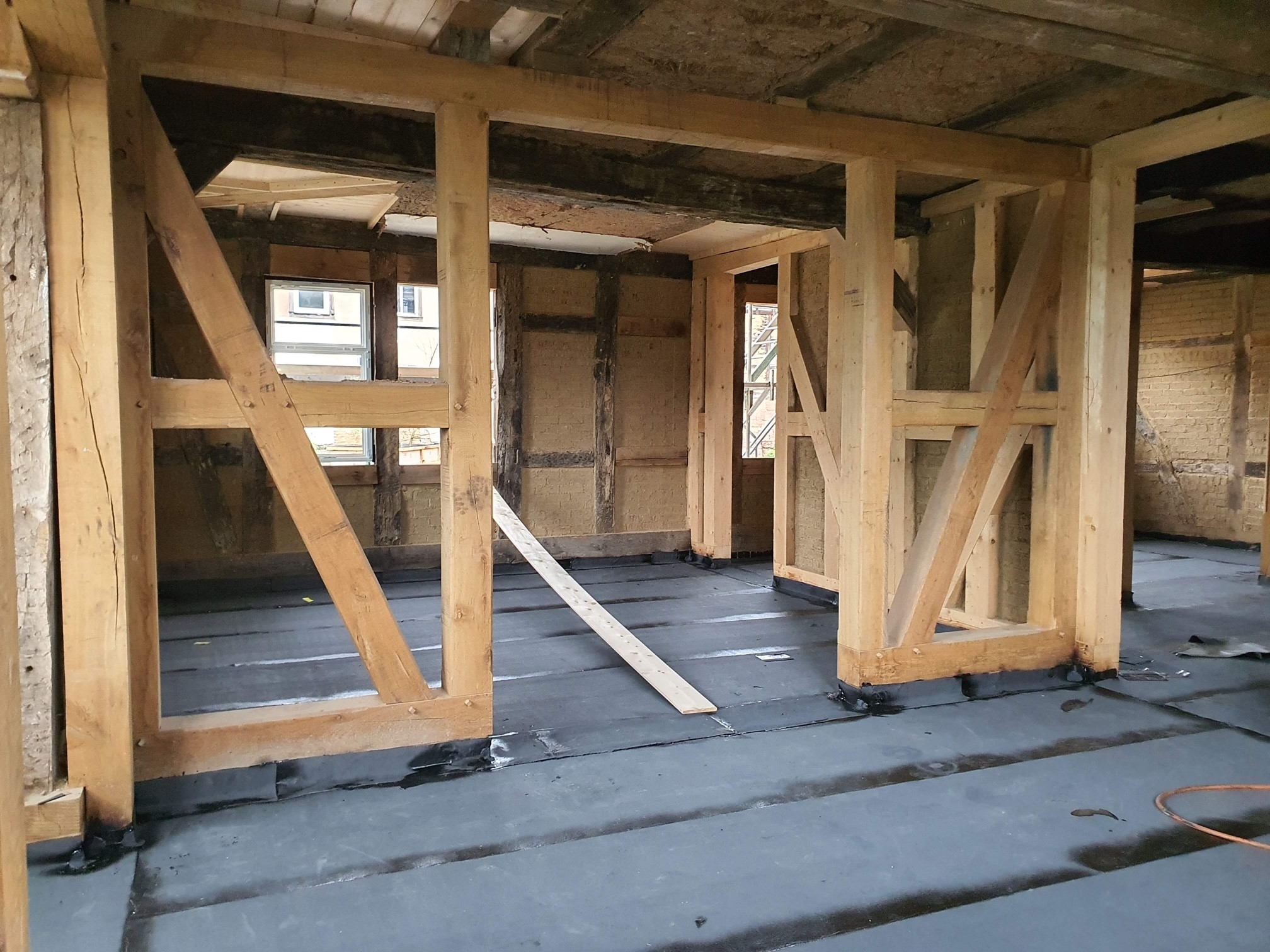 Eine Sanierung von Gebäuden dieser Altersklasse erfordert Mut und Ausdauer, da häufig erst während des Prozesses unvorhergesehene Probleme auftreten. So konnte man hier das Ausmaß der Holzschädigungen erst nach Bauteilfreilegungen erkennen. Obwohl individuelle Lösungen für jeden Fall gefunden wurden, führten sie gelegentlich zu einem höheren Arbeitsaufwand und auch zu zeitlichen Verzögerungen. Zusätzlich hielten auch Lieferengpässe oder auch die Corona-Krise den Baufortschritt auf.