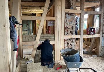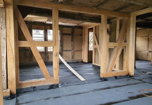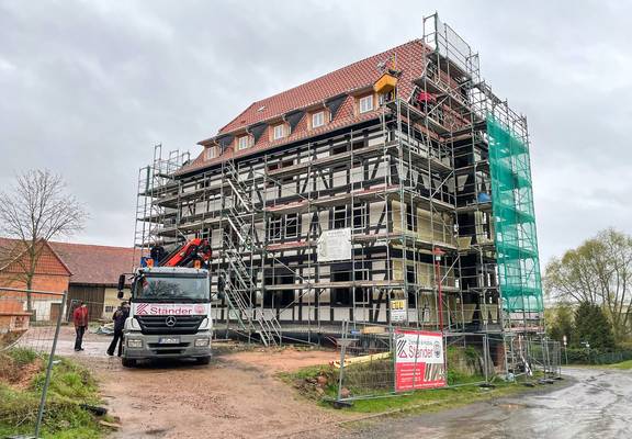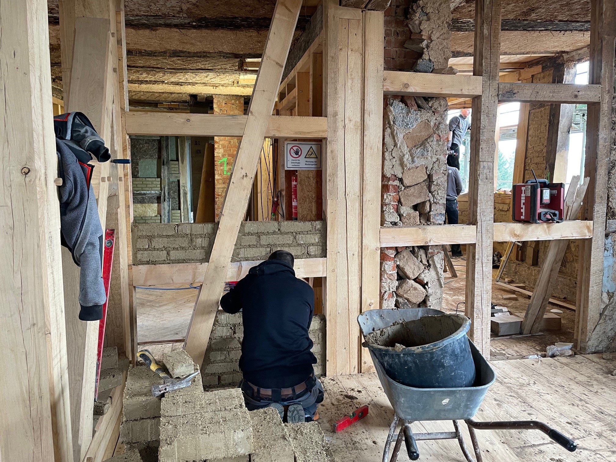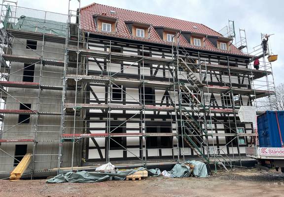 Die umfangreichen Zimmerer- und Rohbauarbeiten sind nun abgeschlossen. Aktuell arbeiten Trockenbauer, Tischler und Putzer im und am einstigen "Witzlebener Hof". In Kürze werden die Haustechniker mit ihren Arbeiten beginnen.