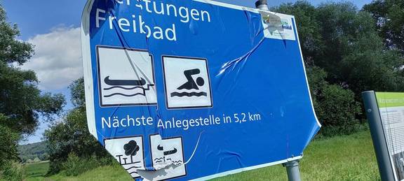 Mitte August haben Unbekannte ein größeres Hinweisschild an der Anlegestelle hinter dem Freibad Gerstungen stark beschädigt.