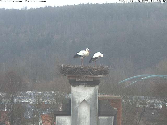 Dem miesen Wetter zum Trotz ist nun auch Frau Storch am Dienstag, dem 11. Februar in Gerstungen wohlbehalten eingetroffen.