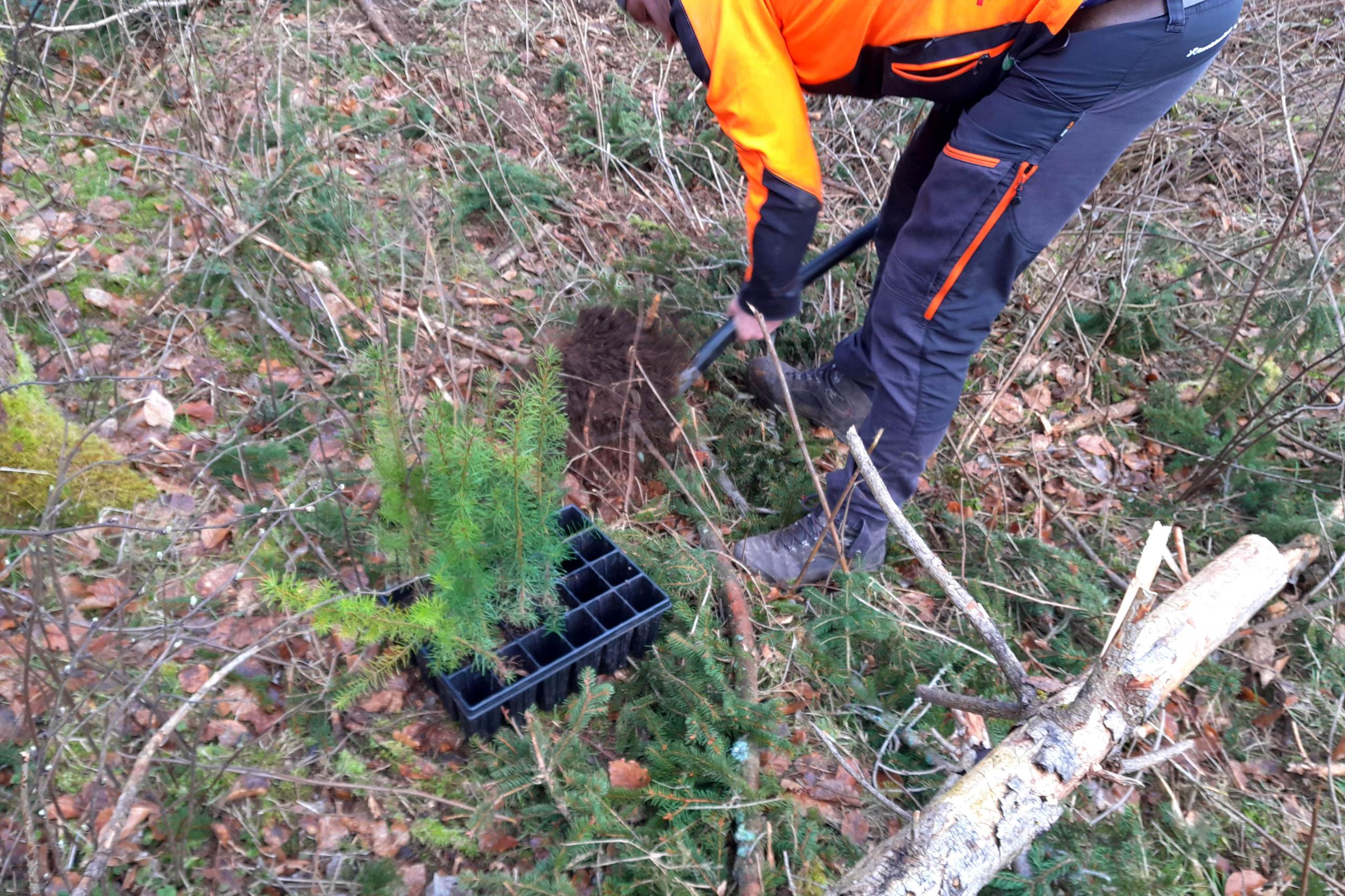Traditionelle Baumpflanzaktion: 144 kleine Douglasien und 4 Linden für den Gemeindewald