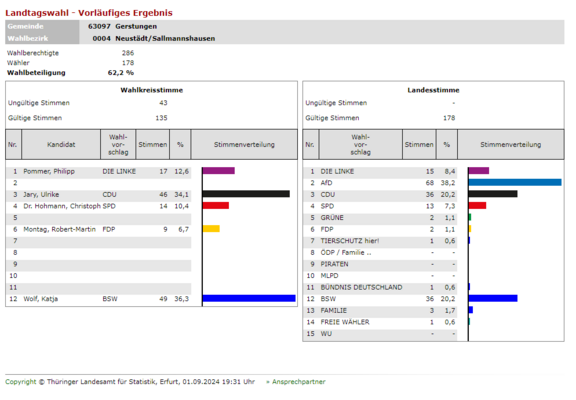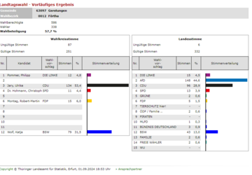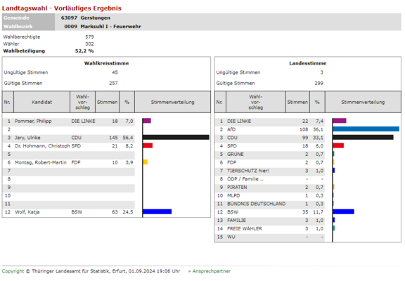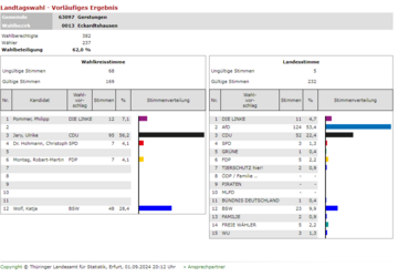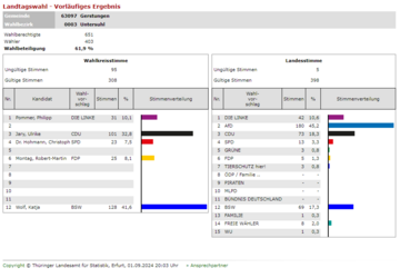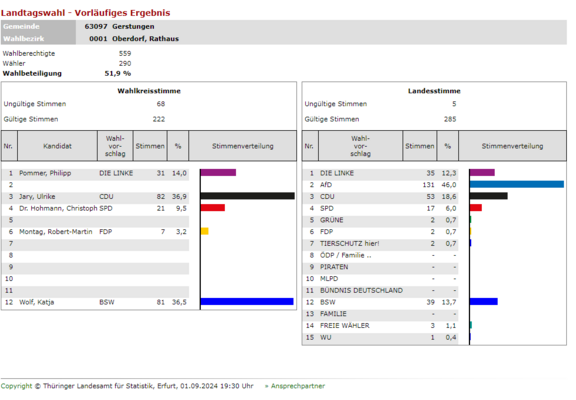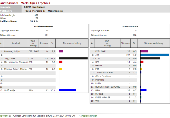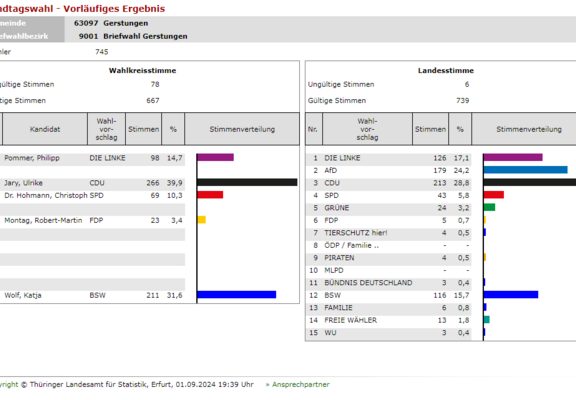 Vorläufige Wahlergebnisse der Landtagswahlen in der Gemeinde Gerstungen
