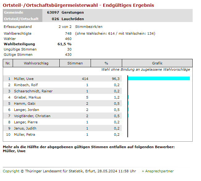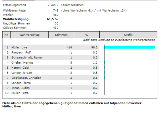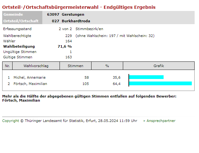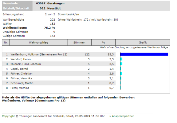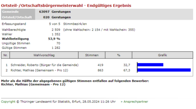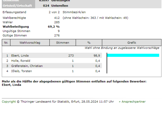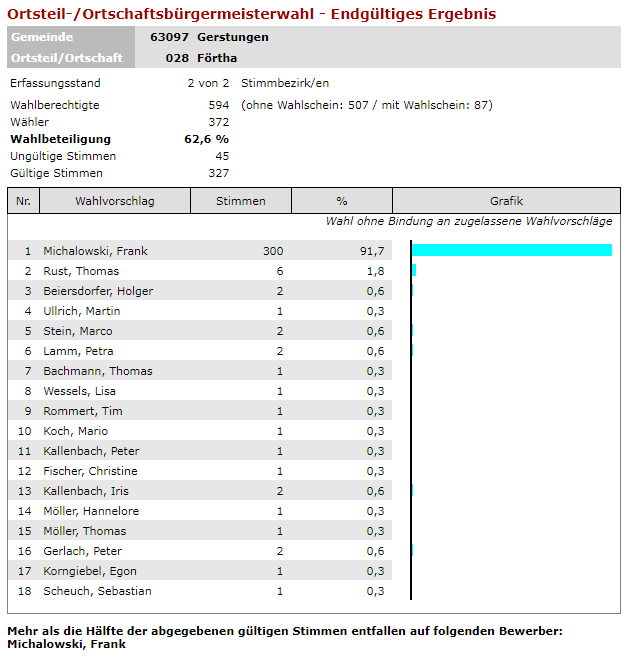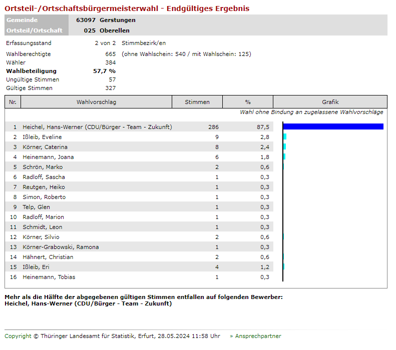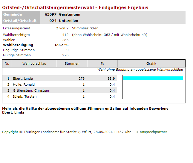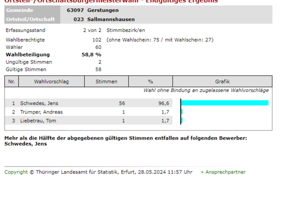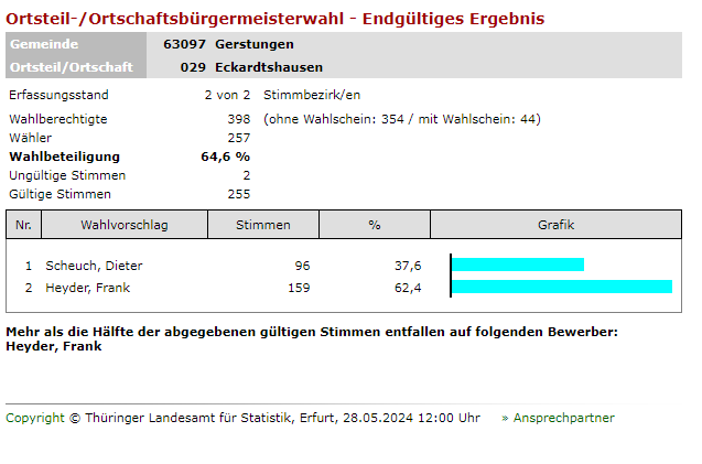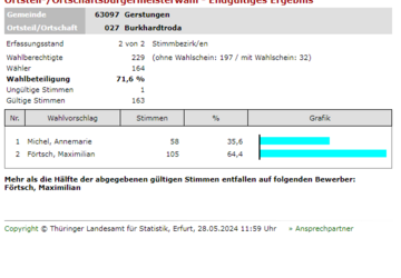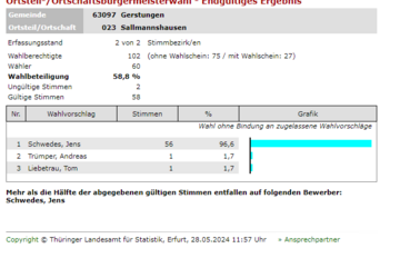 Wahlergebnisse der Ortsteilbürgermeister in der Gemeinde Gerstungen