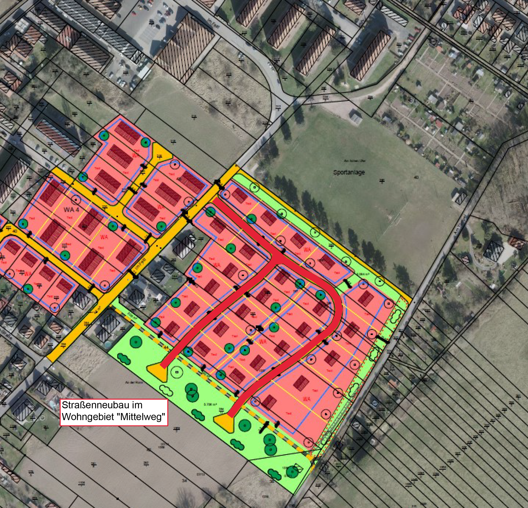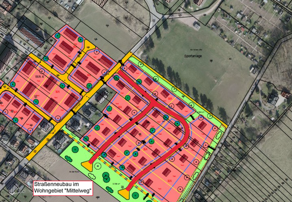 Mit der zweiten Etappe in der Erschließung des „Mittelweges“ stehen künftig etwa 25 Bauplätze für Ein- und Zweifamilienhäuser in Größen zwischen 600 – 1.800 m² Grundstücksfläche künftigen Häuslebauern zur Verfügung.
