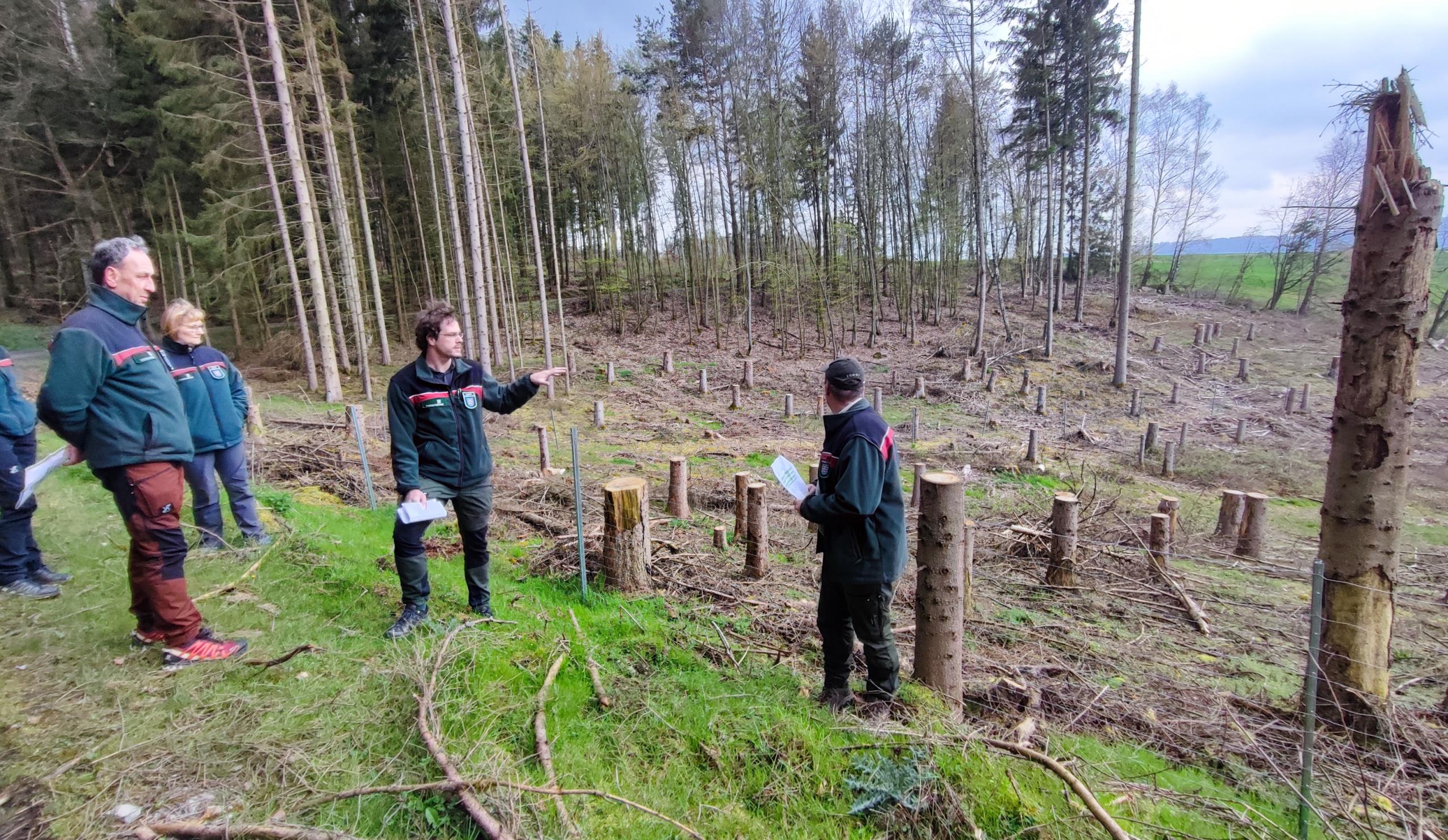 Zu einer Exkursion in verschiedene Waldabschnitte der Gemeinde Gerstungen hatte Forstamtsleiter Ansgar Pape am Donnerstag, dem 20. April 2023 eingeladen, um an praktischen Beispielen die unterschiedlichen Planungsgrundsätze der gemeindlichen Forsteinrichtung zu erläutern, die nun auf die Dauer von zehn Jahren fortgeschrieben werden.