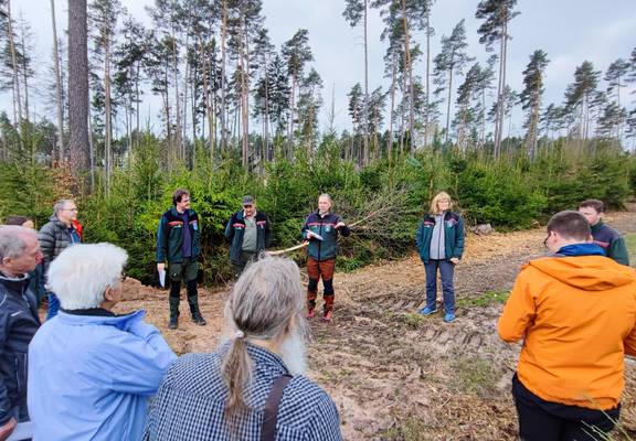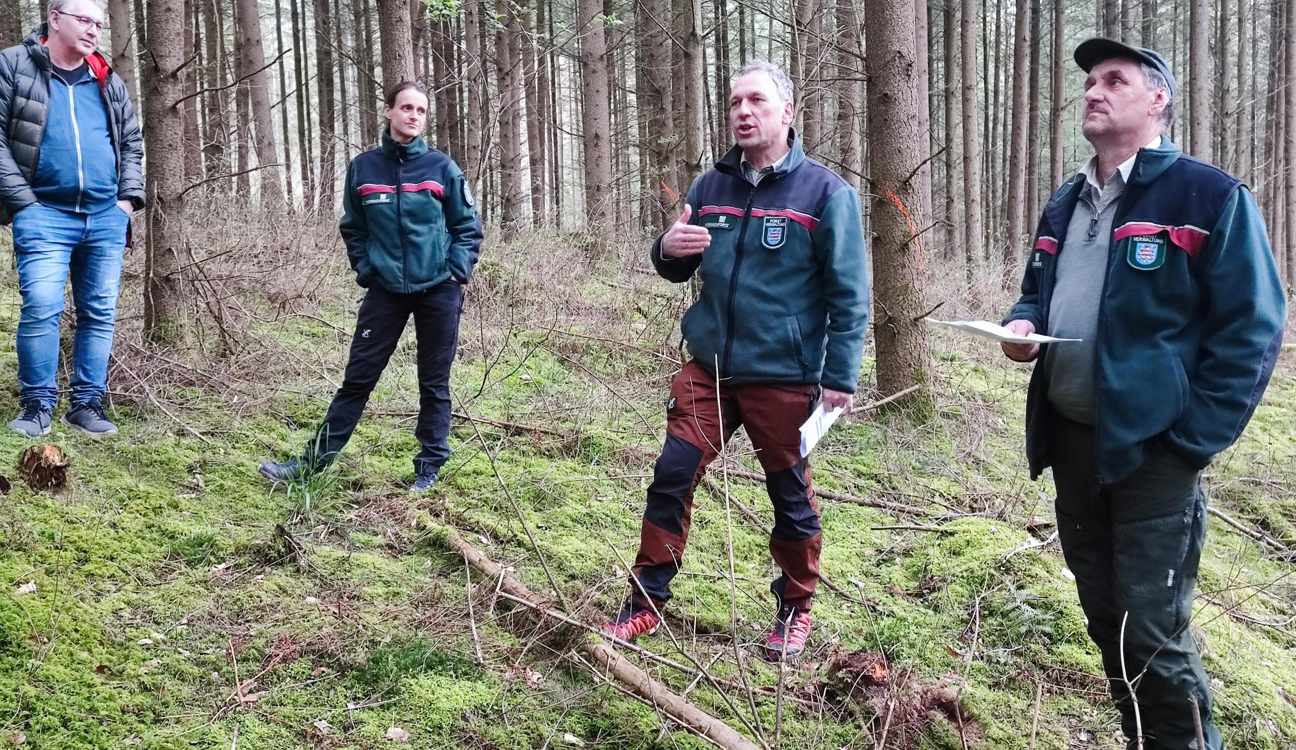 Um die geplante Forsteinrichtung nun an praktischen Beispielen zu erläutern, ging es im Anschluss zur Exkursion in verschiedene gemeindliche Waldstücke.