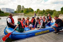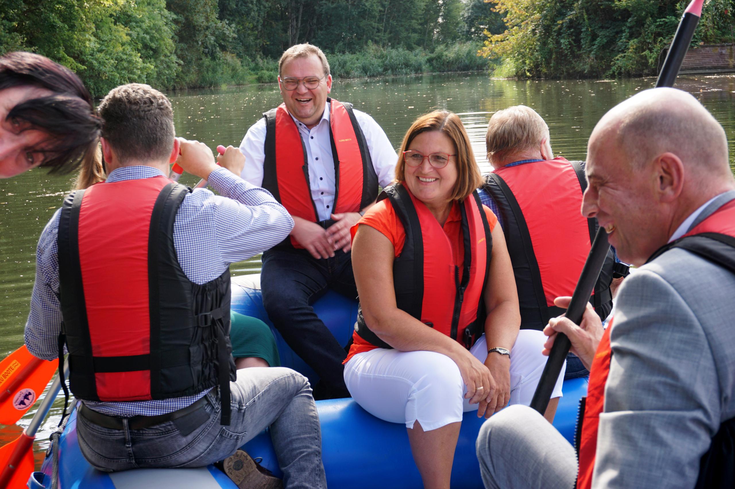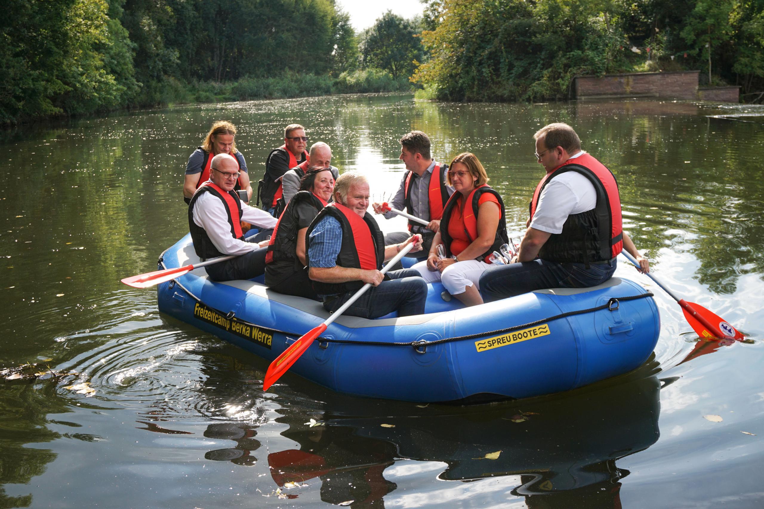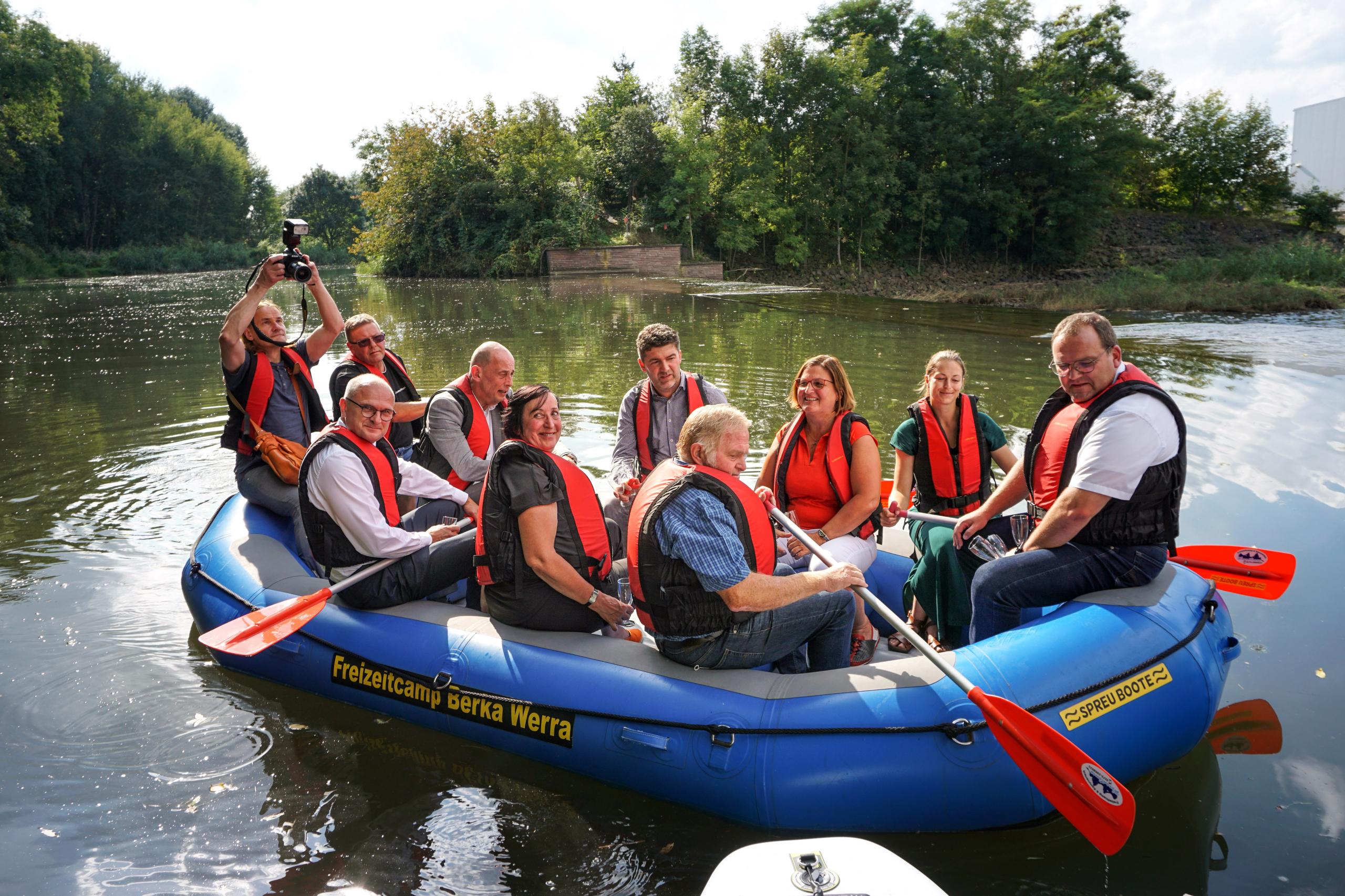 Nach einem kurzen Gedankenaustausch aller Beteiligten wurde das Band von Herrn Minister Tiefensee und der Projektbeteiligten symbolisch durchschnitten. Im Anschluss ging es zur einer kleinen Ausfahrt mit einem Paddelboot entlang der Werra in Berka.