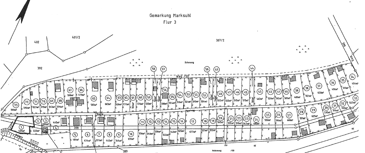 Die bebauten oder unbebauten Freizeit- und Erholungsgrundstücke variieren in Größe (zwischen 146 m² und 677 m²) und Ausstattungsmerkmalen und unterliegen nicht dem Bundeskleingartengesetz.