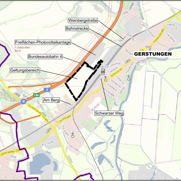 Der Geltungsbereich der 1. Änderung des Bebauungsplans Nr. 15 Gewerbegebiet „Oberhalb der Bahn“ der Gemeinde Gerstungen ist der Anlage zu entnehmen.