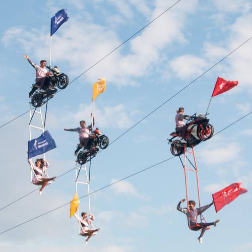 In der klassischen Hochseilshow wurde das Seil mit Fahrrädern, Einrädern – sogar mit dem Hocheinrad und dem legendären Steigerrad – überquert. Mit dem „Zweimannhoch“, frei auf Stühlen stehend und mit Pyramiden, wie der Fahrrad-Spagat-Pyramide wurde das Publikum schnell gefesselt. Auch die Jüngsten der Weisheits, Charly (9) und Lenny(7), zeigten, was Artistenkinder von ihren Eltern und Großeltern bereits gelernt haben. Höhepunkt war auf dem Hochseil die Fünf-Personen-Pyramide.