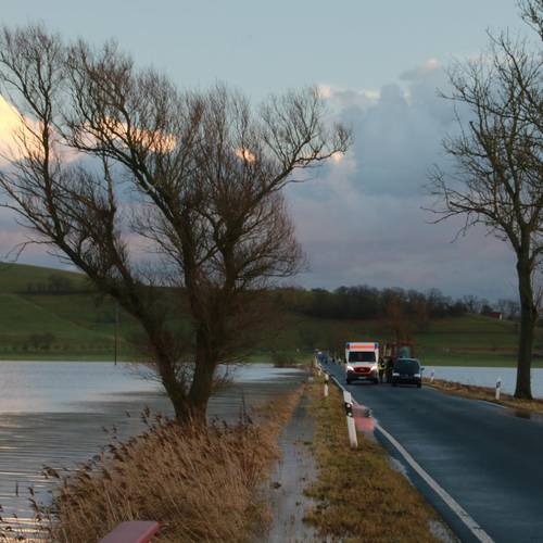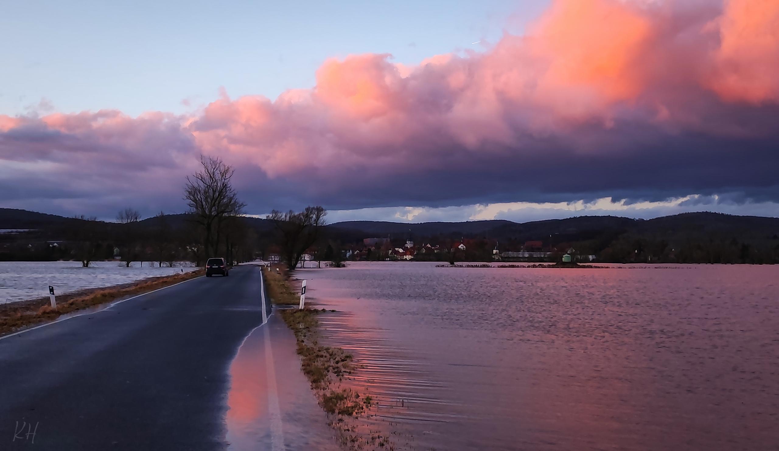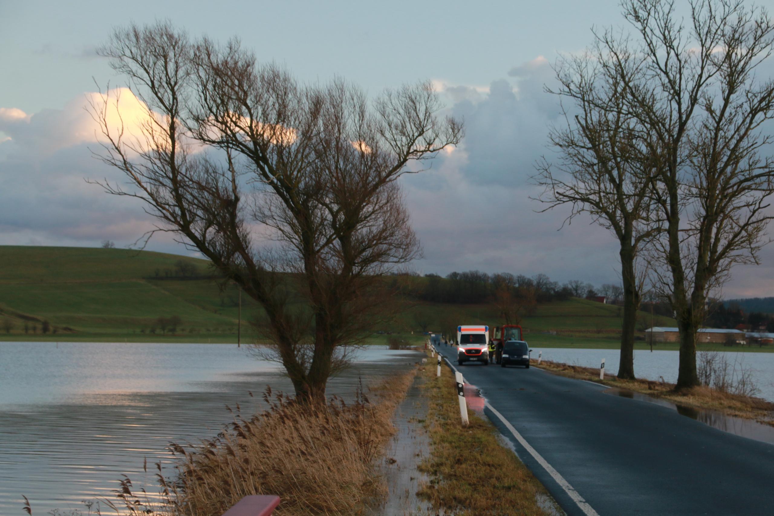 Anhaltende Niederschläge führten Ende Dezember zur Überflutung der Werra-Auen. Am ersten Weihnachtsfeiertag war die Sperrung der "Herdaer Chausee" notwendig geworden.