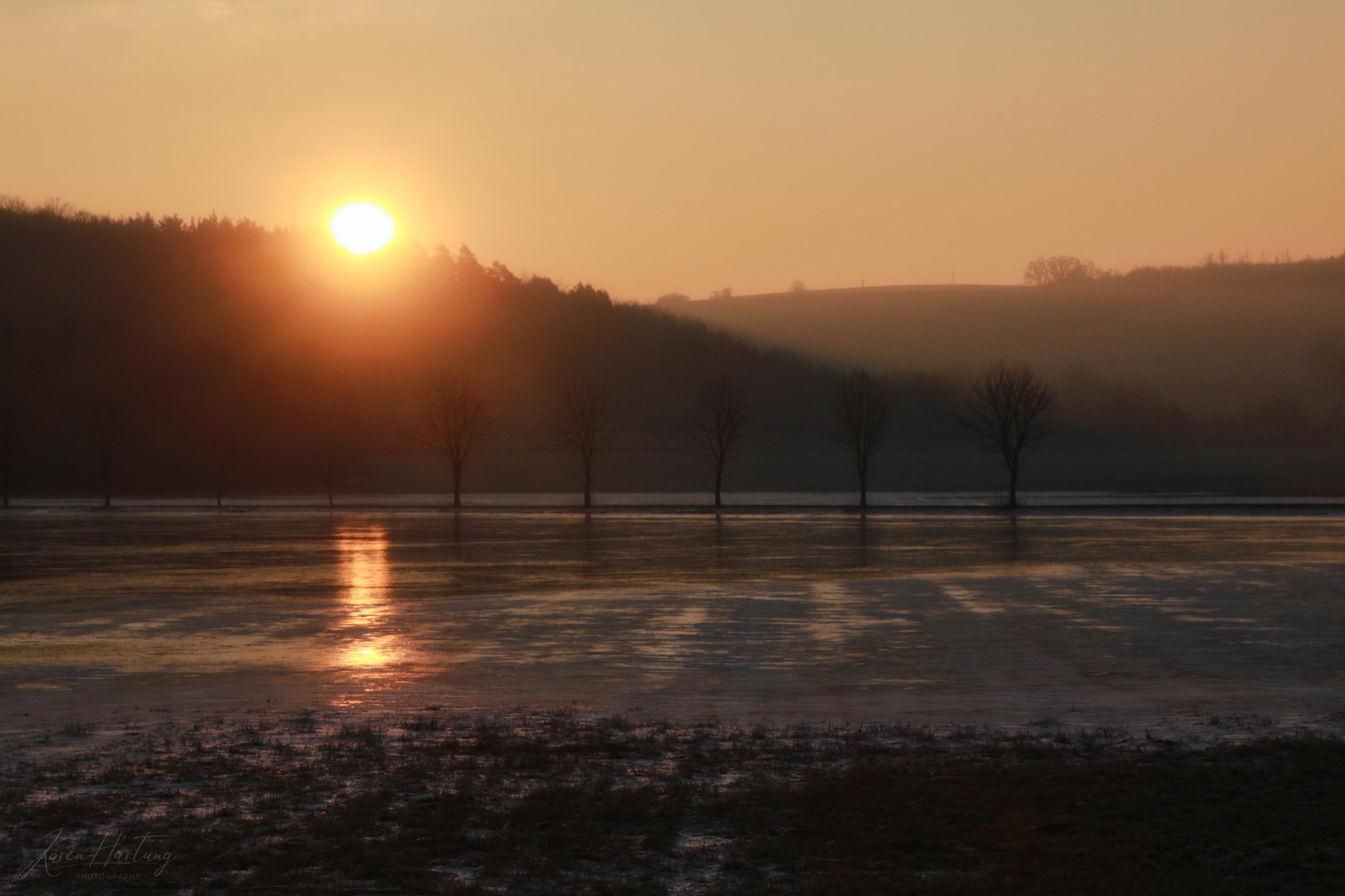 Nach dem abgelaufenen Hochwasser der Werra kurz nach dem Jahreswechsel offenbarten sich in den weiten Flussauen faszinierende Schauspiele aus Farben und Formen. Die eisige Kälte der Nacht formte bizarre Gebilde, die sich wie Kunstwerke in der Landschaft präsentierten und die zaghafte Sonne, die über den bewaldeten Berghängen des Böllers aufzugehen versuchte, tauchte die Szenerie in ein zauberhaftes Licht. Ein atemberaubender Anblick, der zahlreiche Spaziergänger und auch Fotografen anlockte.