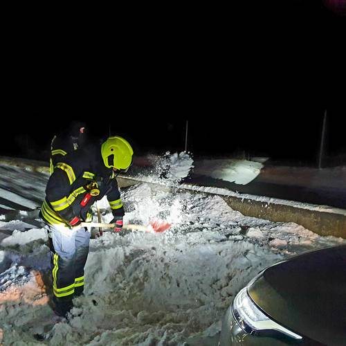 Der erste Alarm war am Morgen des 8. Februar eine ausgelöste Brandmeldeanlage im Untersuhler Industriegebiet. Zum Glück, nur ein Fehlalarm. Danach ging es Schlag auf Schlag mit Unwettereinsätzen auf Grund des starken Schneefalls weiter. Unter anderem mussten mehrere LKW, die sich auf der Autobahnauffahrt im Schnee festgefahren hatten, befreit werden.