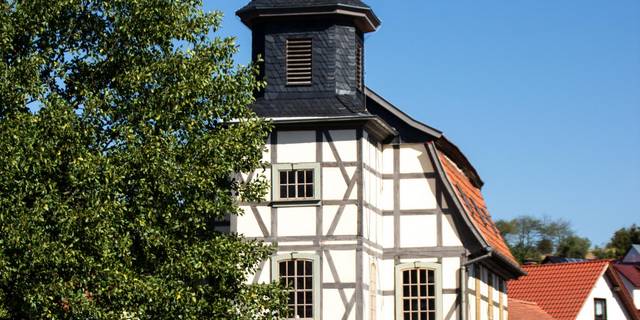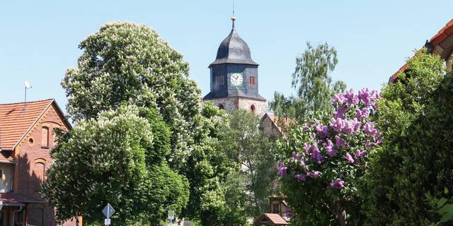 Die elegante Fachwerkkirche St. Anna entstand 1787. Den Altar ziert ein Triptychon von Lisa Beyer-Jatzlau. Die Mitteltafel stellt zwei Jünger bei der Begegnung mit dem auferstandenen Christus in Emmaus dar. Als sie gemeinsam speisten erkannten ...