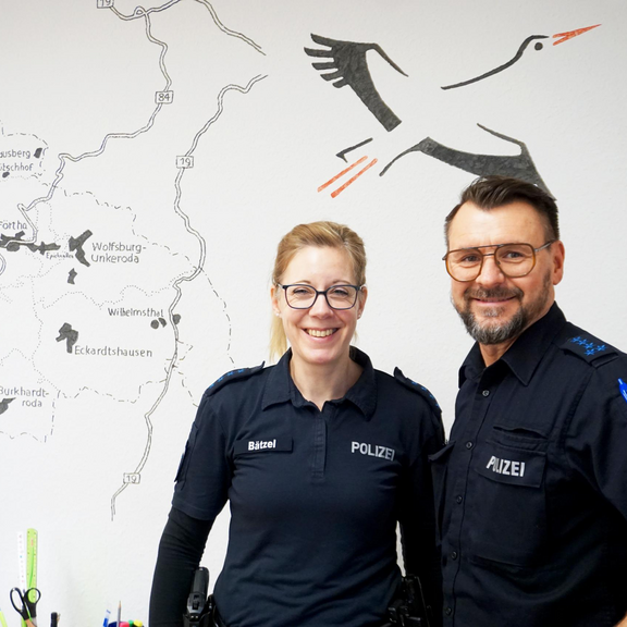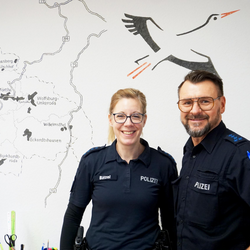 Polizeihauptmeister Christian Wagner und Polizeihauptmeisterin Peggy Bätzel