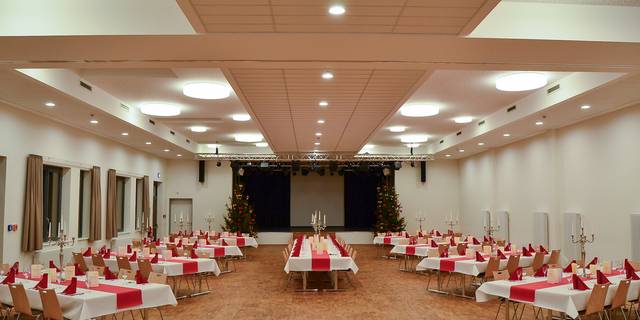 Stilvoll feiern - das ist im großen Saal mit Bühne ebenso möglich wie im kleineren Familienkreis.