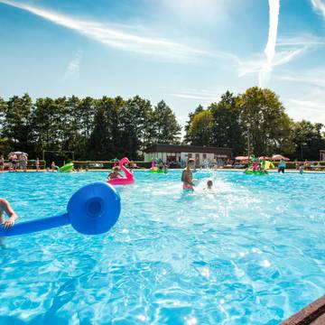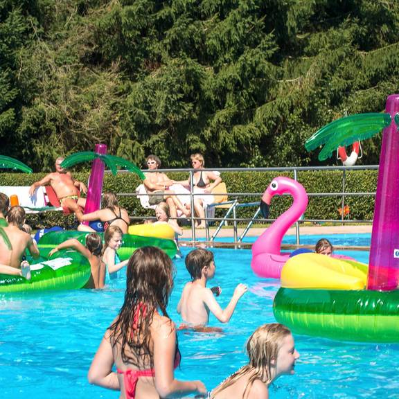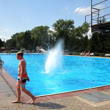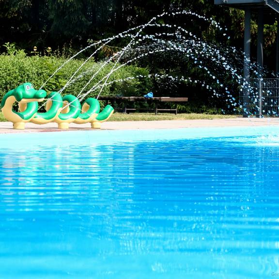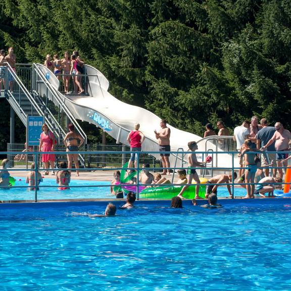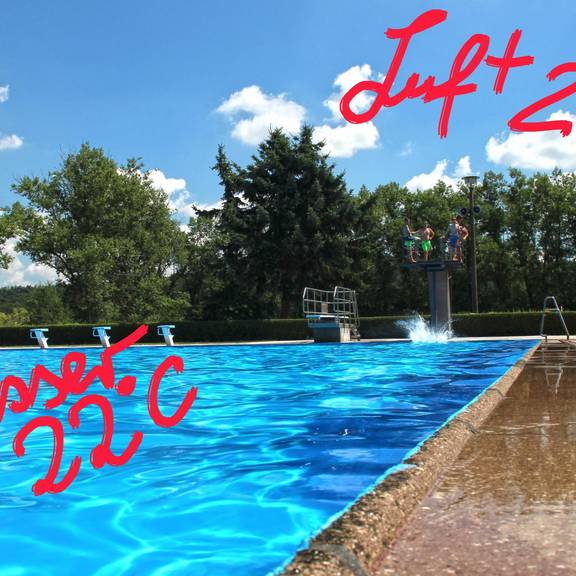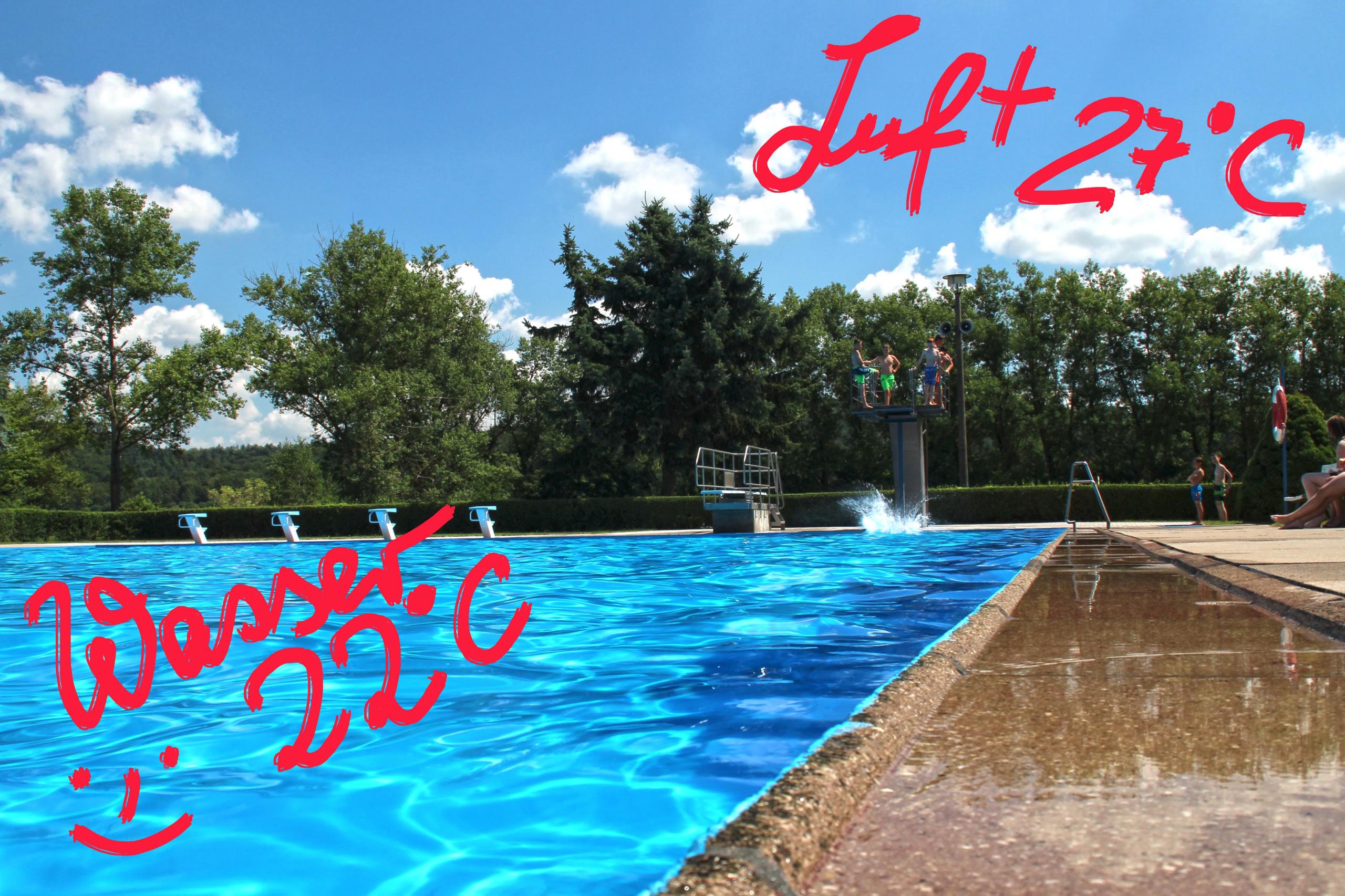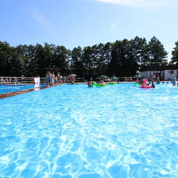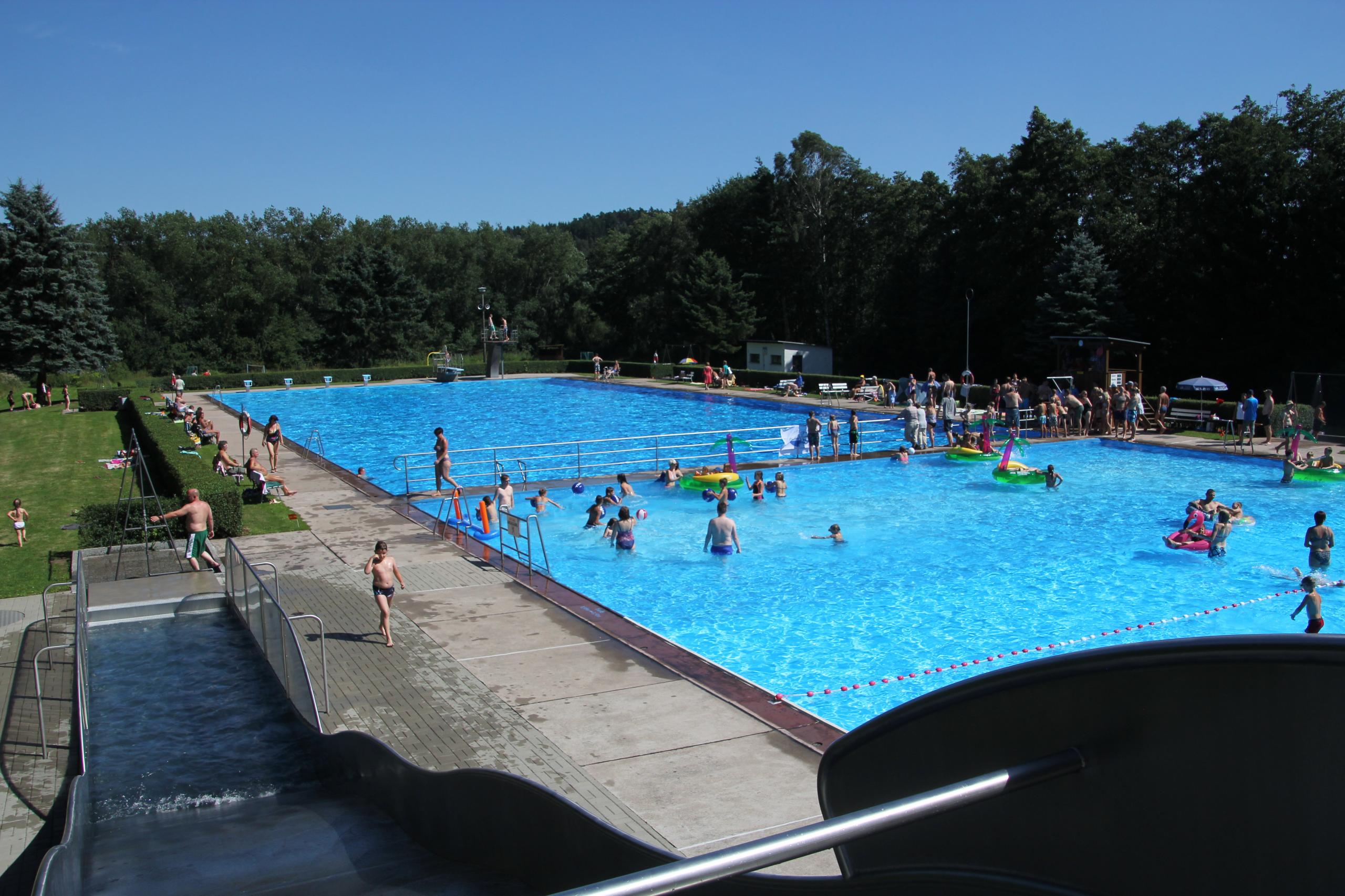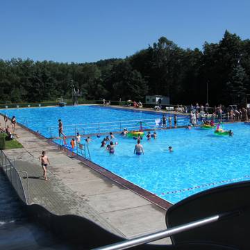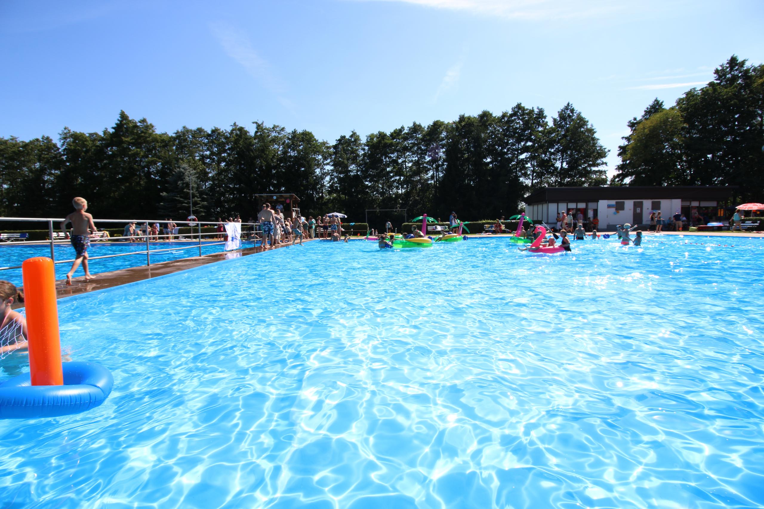 An heißen Sommertagen ist es Anziehungspunkt für Groß und Klein. Den Alltag hinter sich lassen, sich in der Sonne aalen oder den Sprung ins kühle Nass wagen - jeder kommt hier auf seine Kosten. Das Schwimmbad verfügt über ein großes Schwimmerbecken (50 x 25 Meter) mit einer Sprungturmanlage sowie ein Nichtschwimmerbecken (25 x 25 Meter). Im kleineren Babybecken können Eltern mit den Kleinsten planschen.