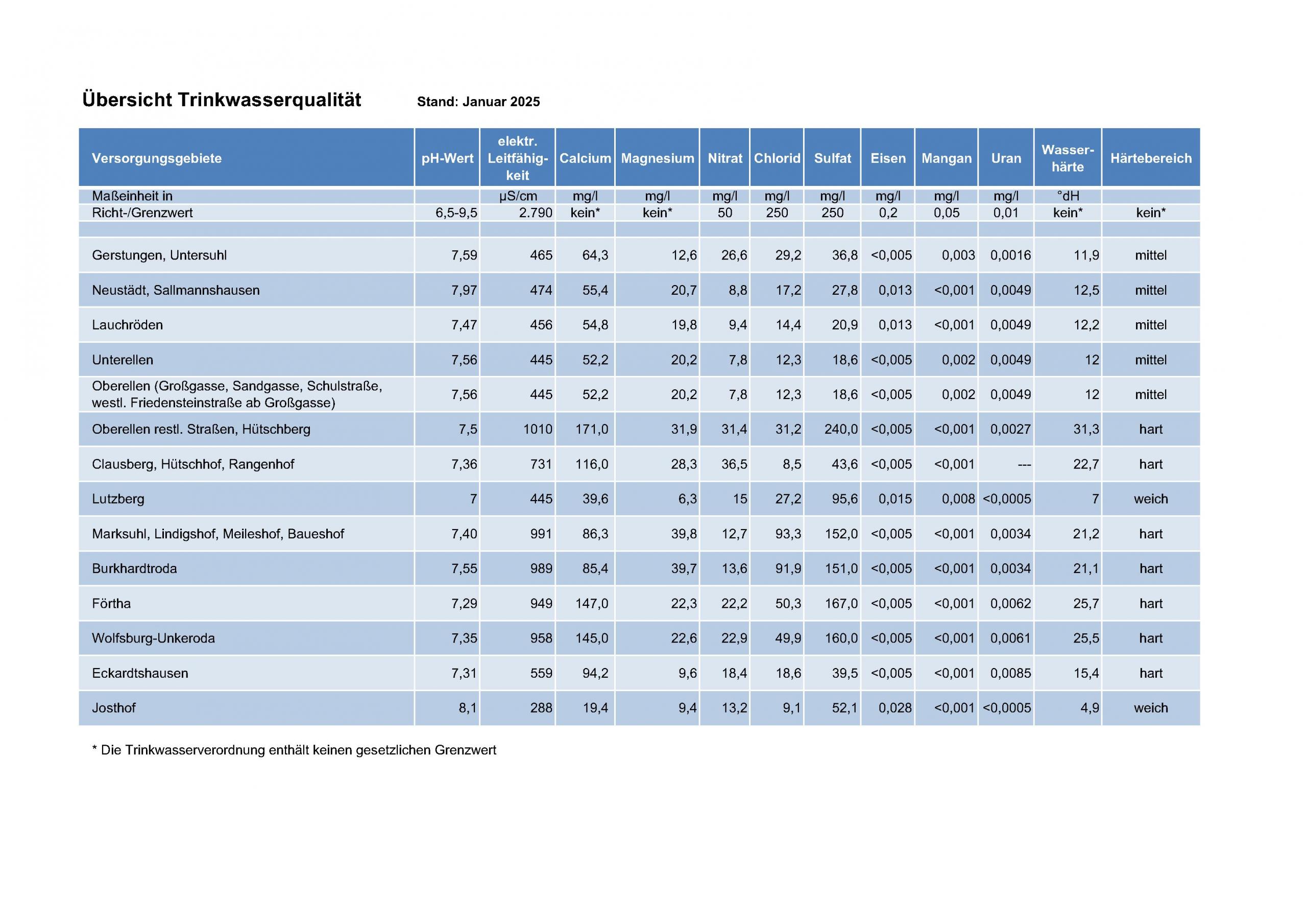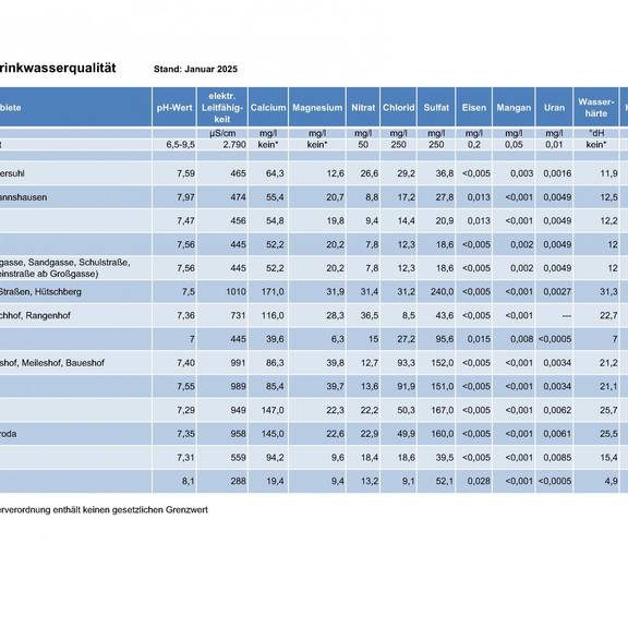 Die Kontrollen ergaben, dass unser Trinkwasser für die Zubereitung von Säuglingsnahrung und für natriumarme Ernährung geeignet ist.