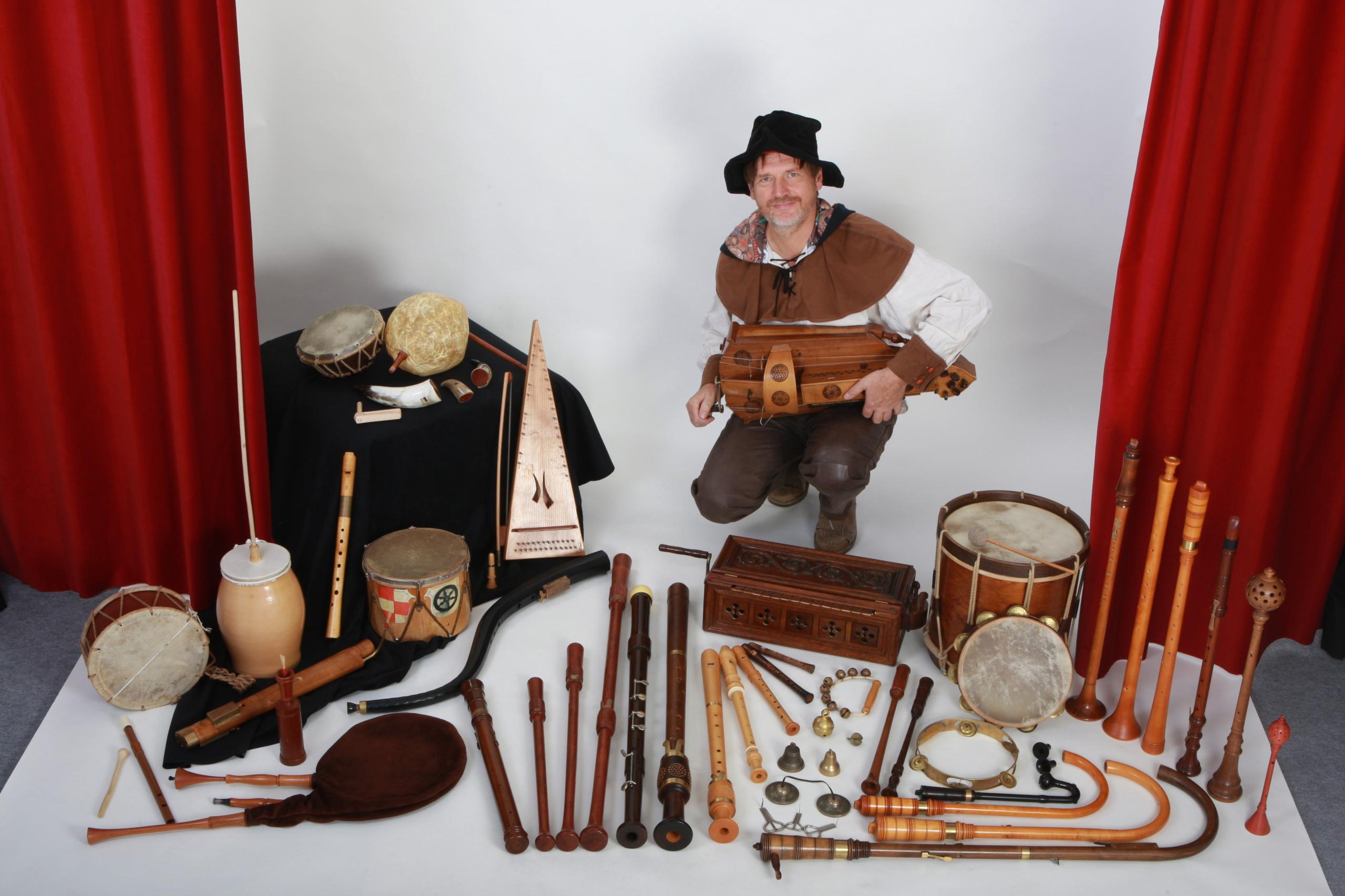 Max, der Spielmann, weitgereist aus Erfordia, unterhält sein Publikum auf einer Vielzahl von Instrumenten. Er ist fasziniert vom Klangreichtum längst vergangener Zeiten und sammelt seit vierzig Jahren Instrumente und musiziert Spielmannsmusik, auch auf in Vergessenheit geratenen Klangkörpern wie dem Psalter, Gemshorn, Kortholt oder der Eunuchenpfeife. So begeistert er Jung und Alt.